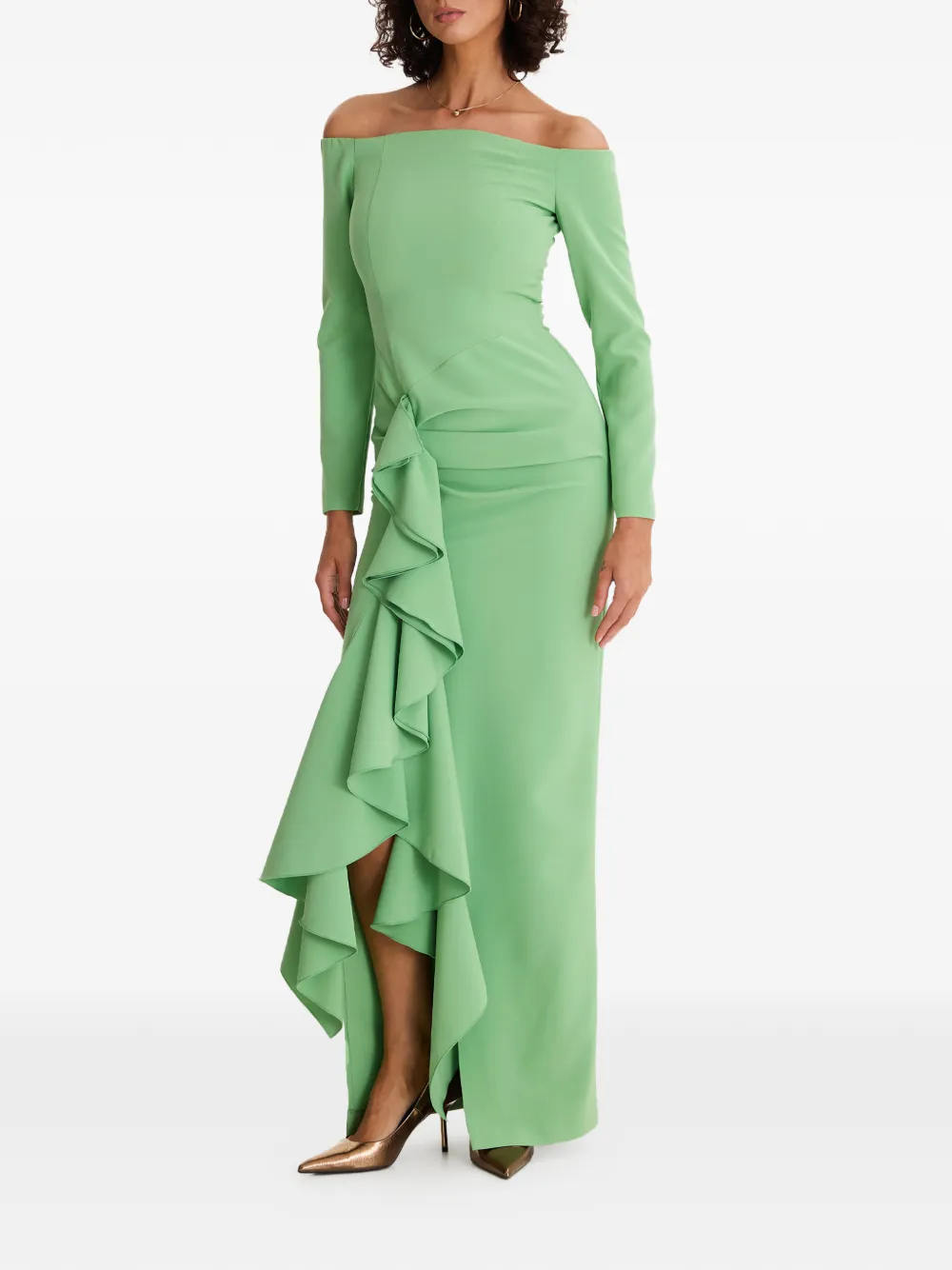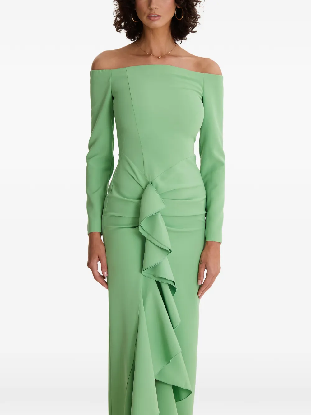 Платье с оборками и открытыми плечами Moos Studio, зеленый 89 879₽