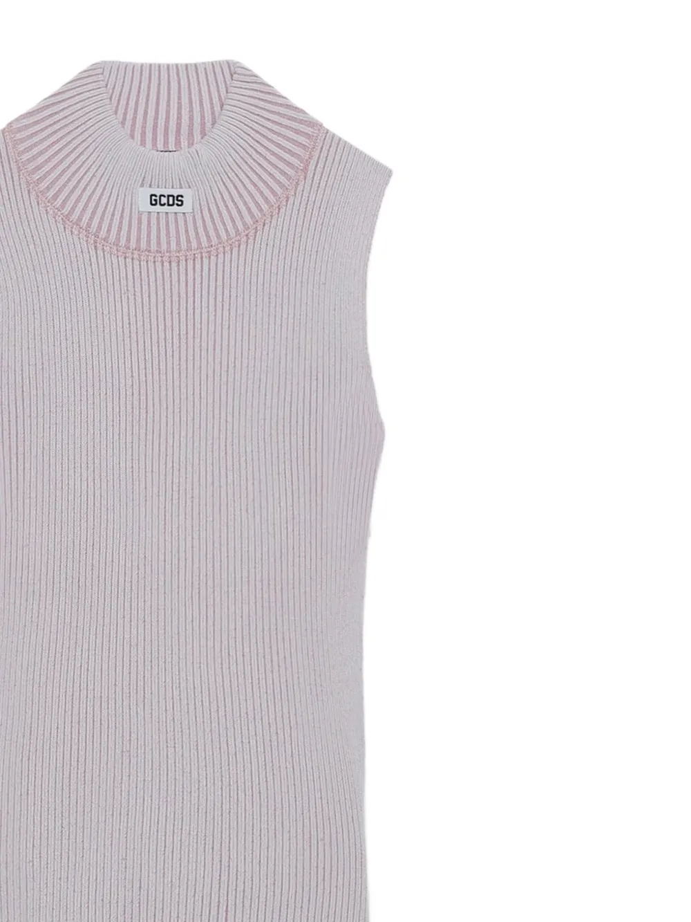 Фиолетовый вязаный в рубчик высокий ворот без рукавов мини-длина