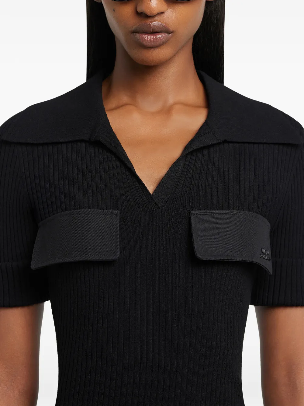 Платье мини в рубчик Courrèges, черный