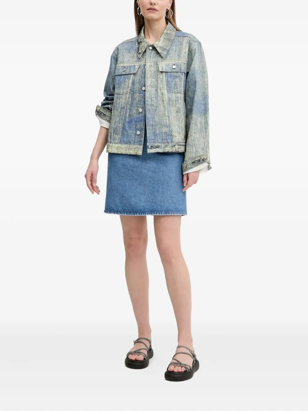Джинсовое платье мини с вышитым логотипом Hugo, синий