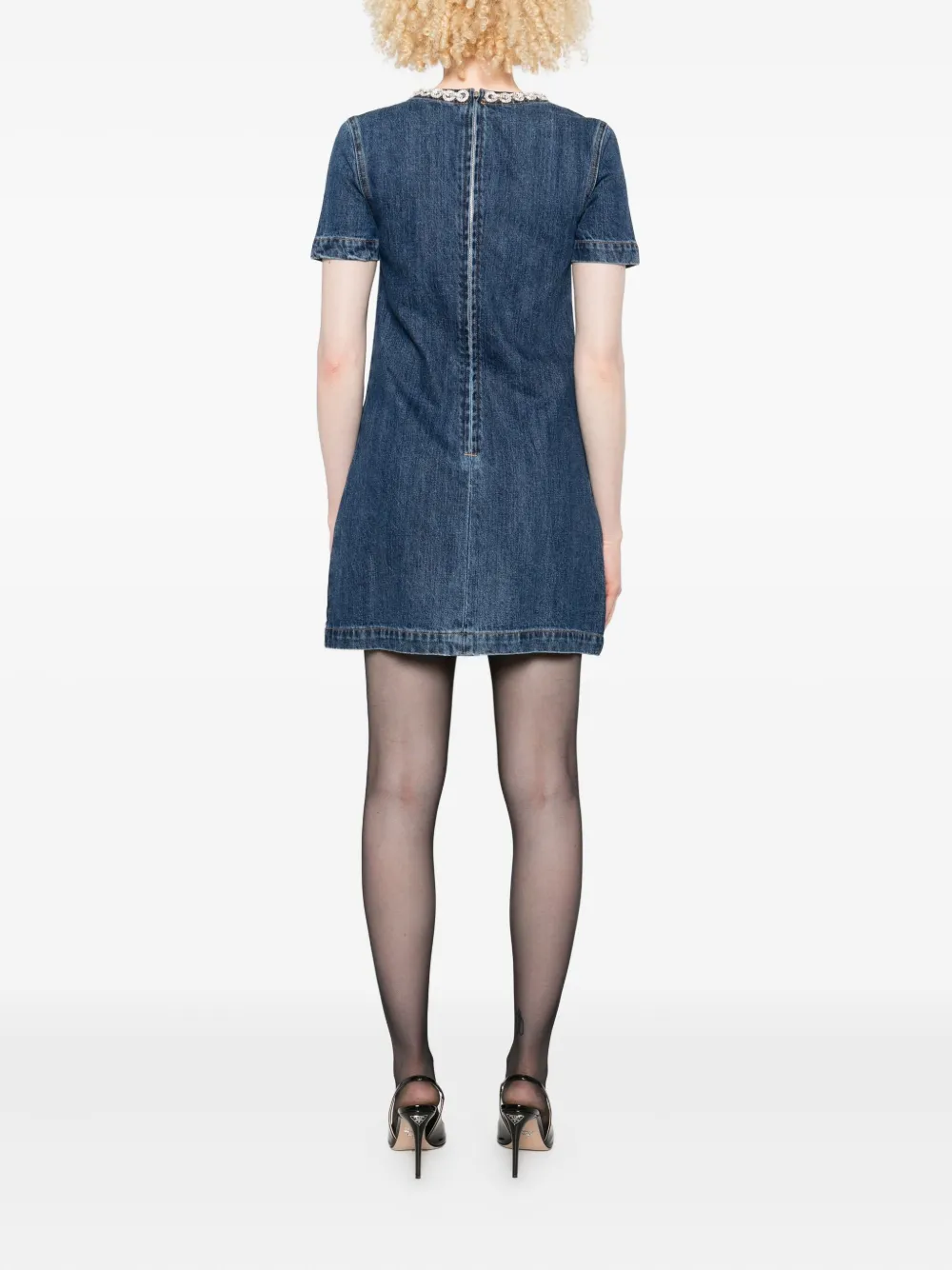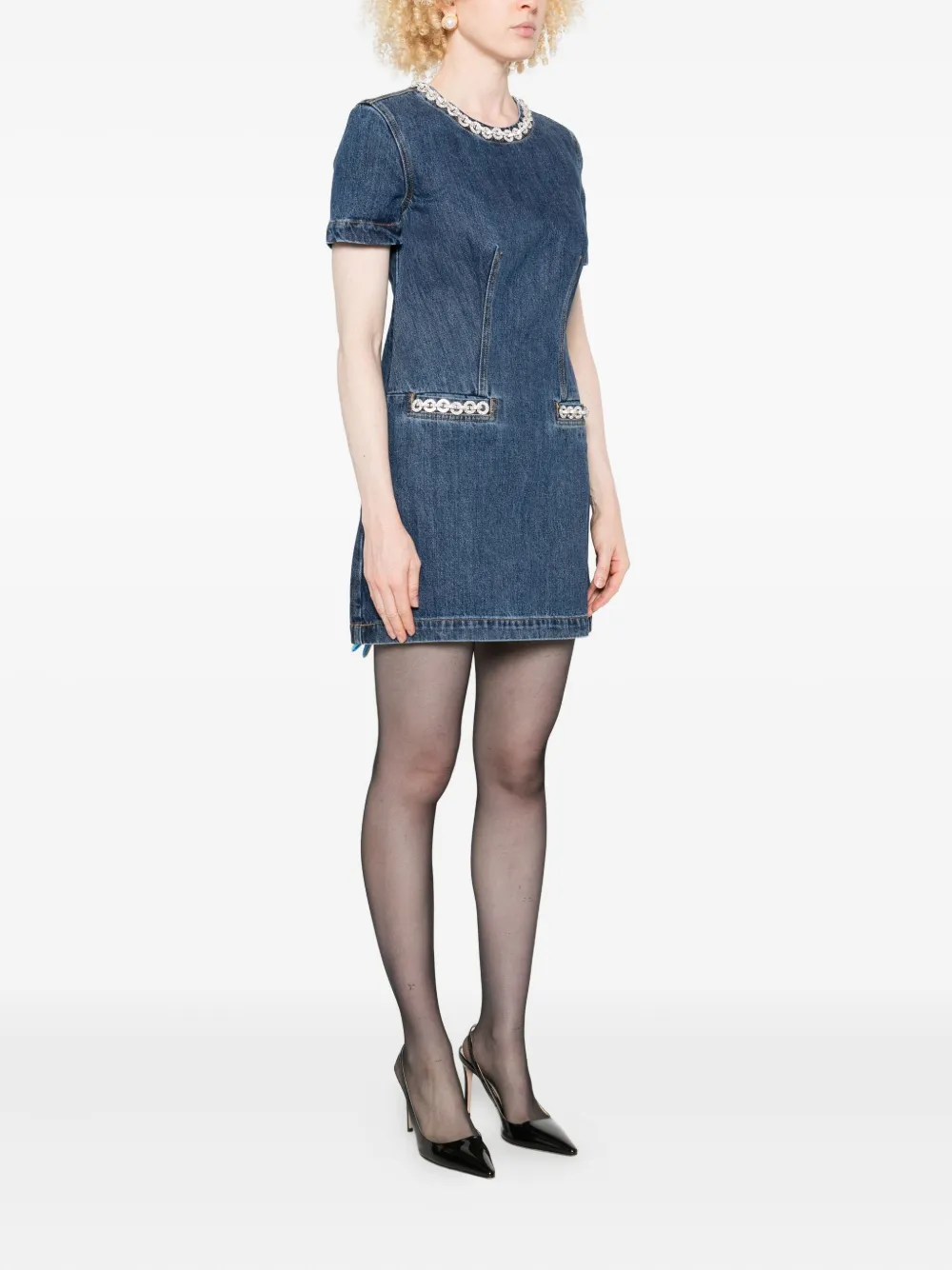 Джинсовое платье мини с декорированным карманом Self-Portrait, синий