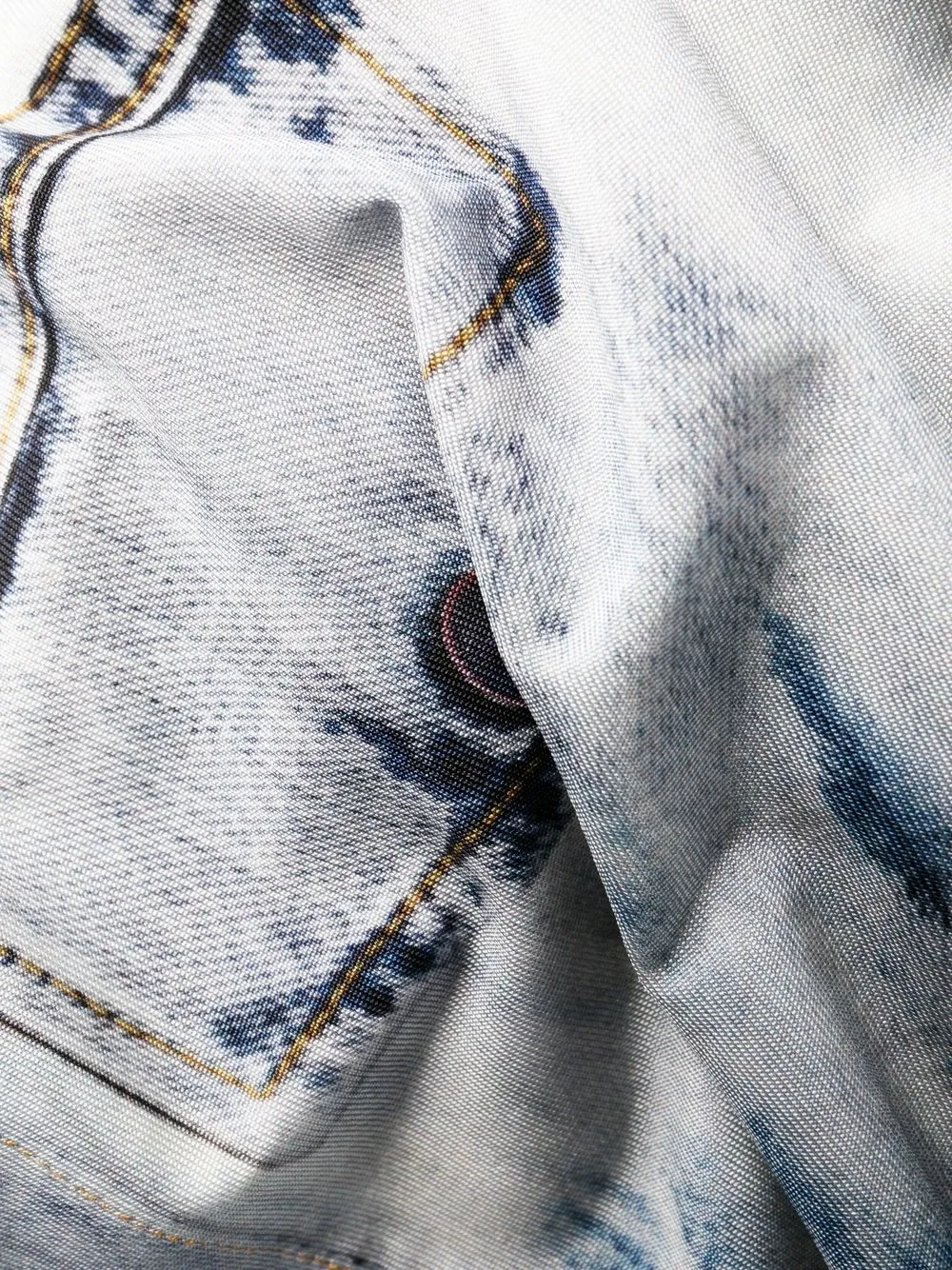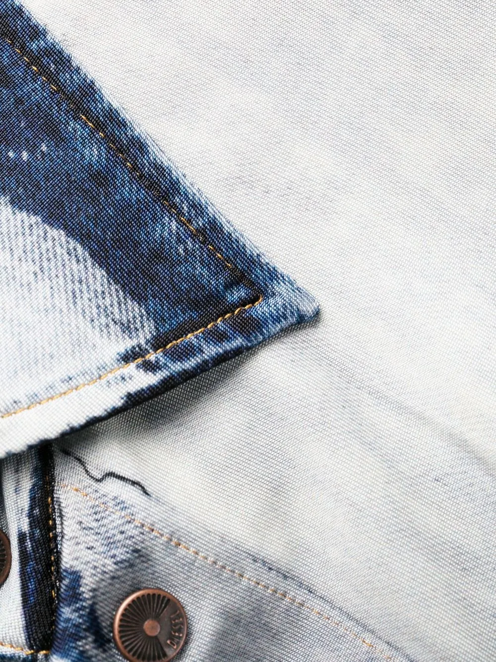 Эффект кислотной стирки, вырезные детали, дизайн со сборками, прямой воротник, застежка на пуговицах спереди, длинные рукава, манжеты на пуговицах и асимметричный подол.