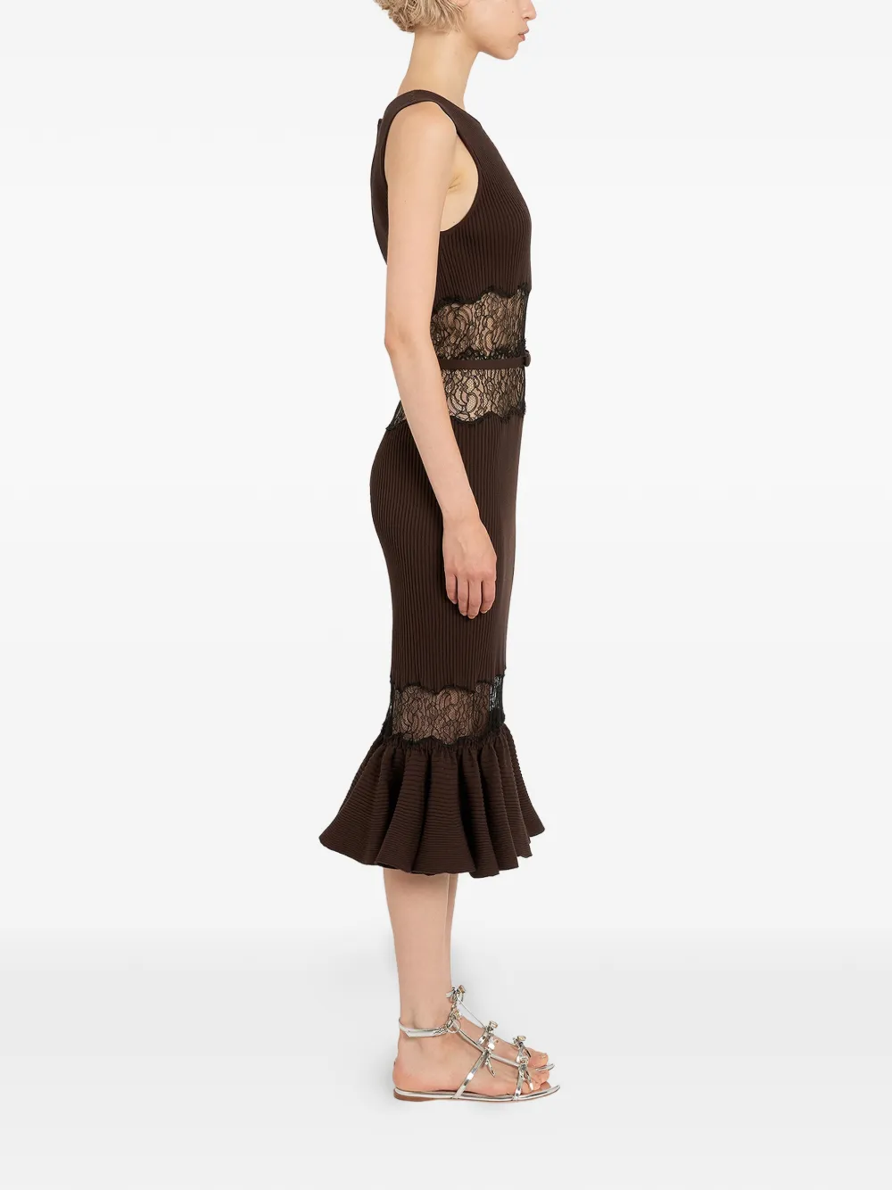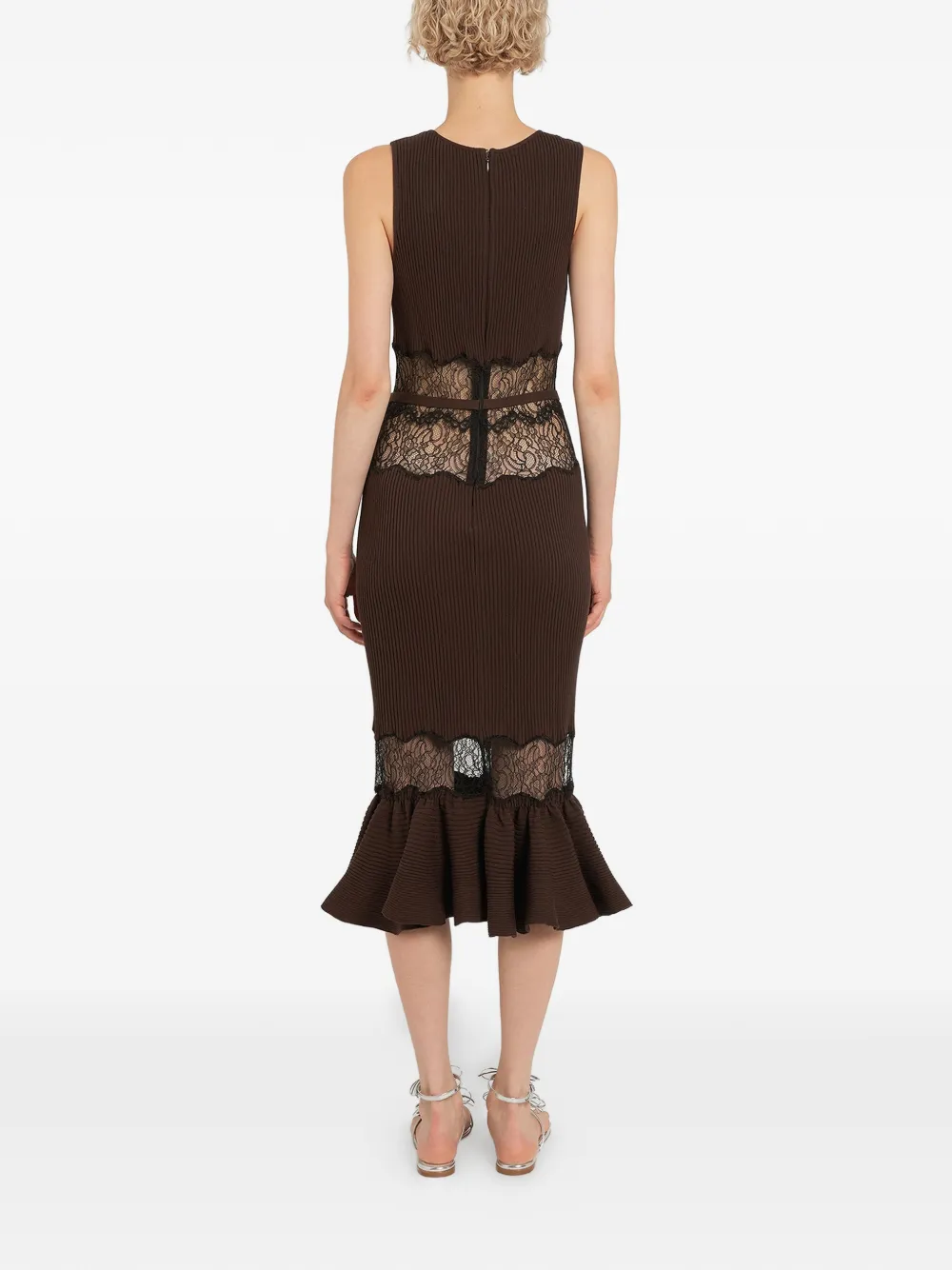 Платье миди с кружевом Giambattista Valli, коричневый
