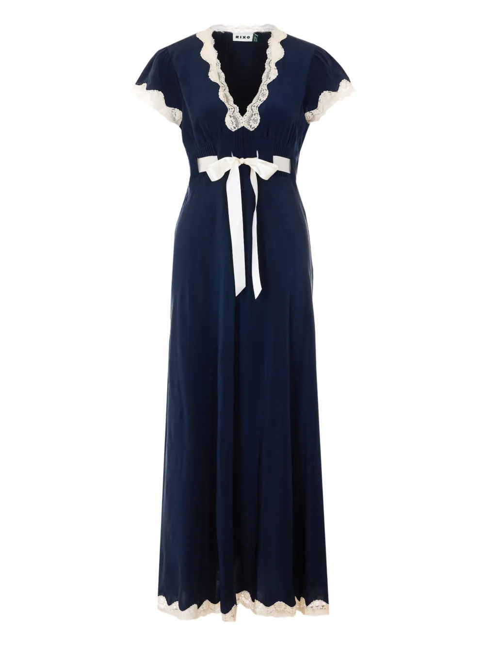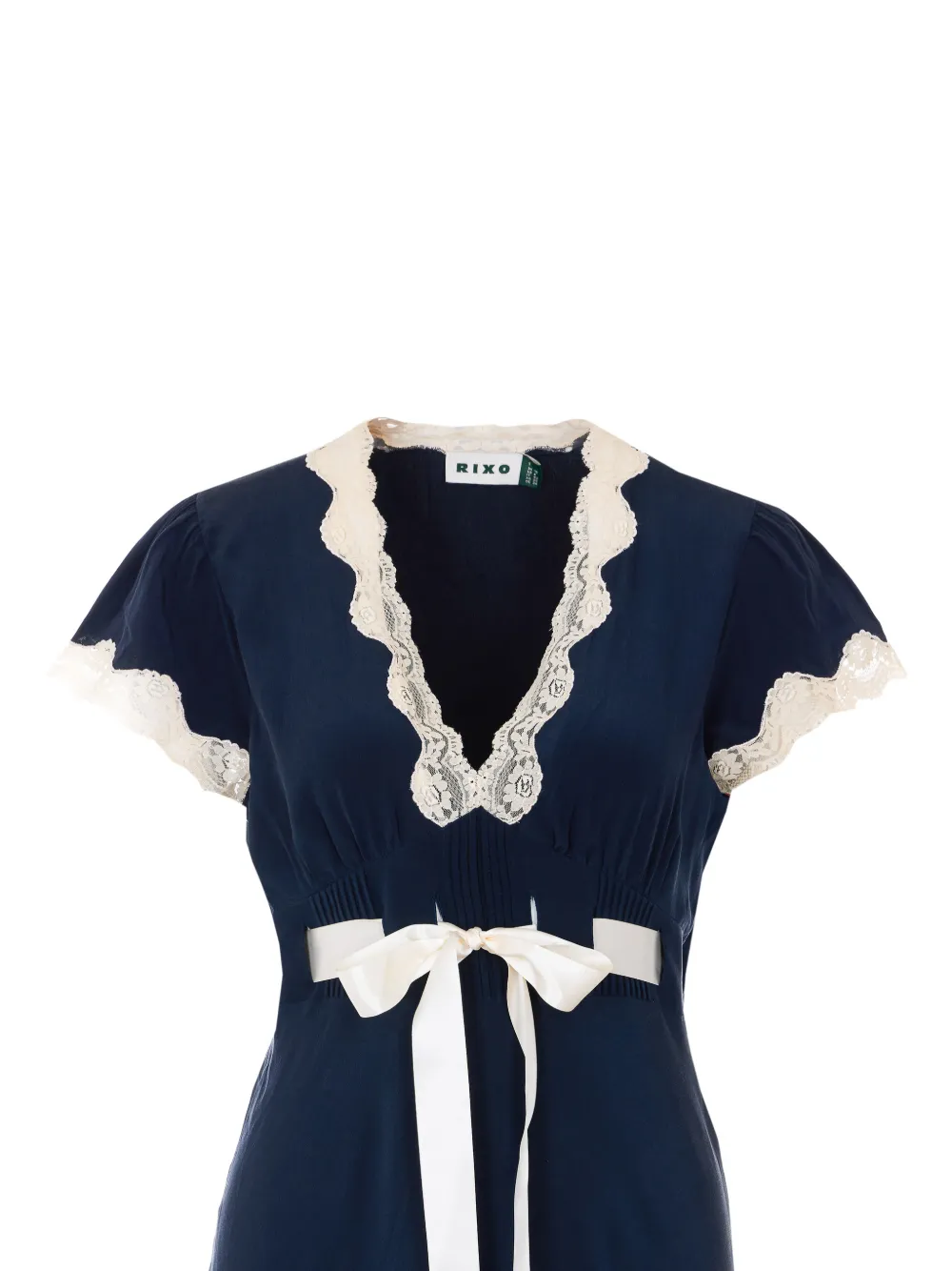 Кружевное миди-платье с V-образным вырезом Marlice Rixo, синий