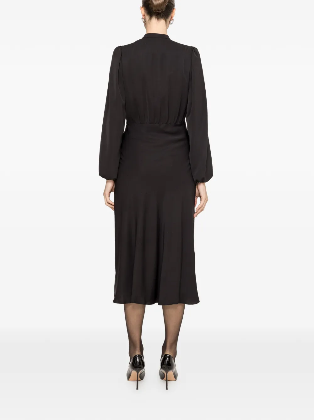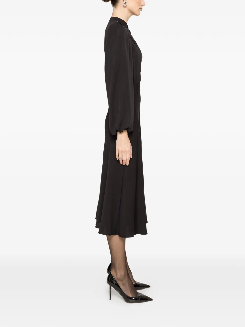 Черная платье миди длины с кружевными вставками, застежкой на пуговицы и длинными рукавами