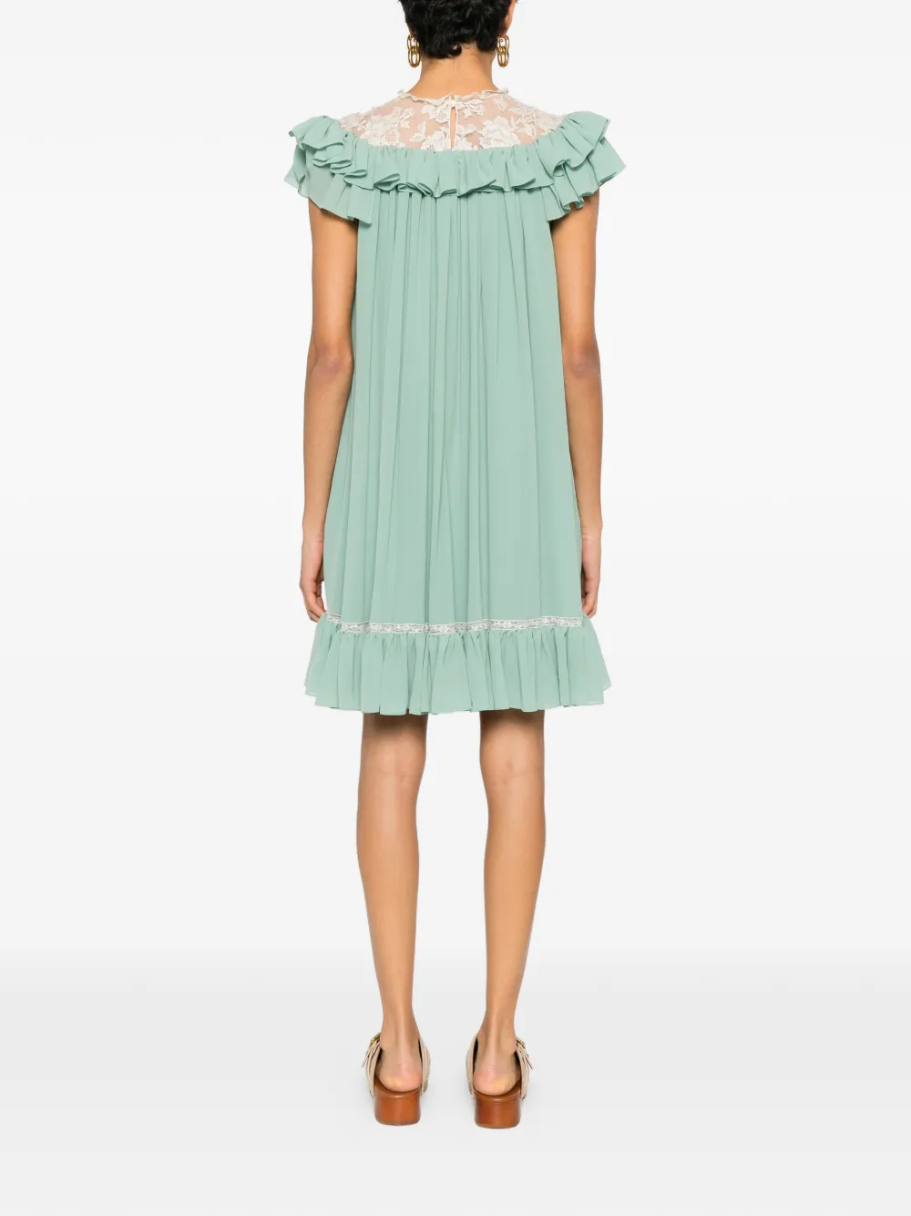 Кружевное мини-платье с оборками Chloé, зеленый