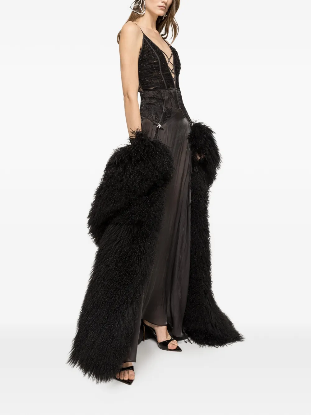 Макси-платье с кружевными вставками Nissa, черный