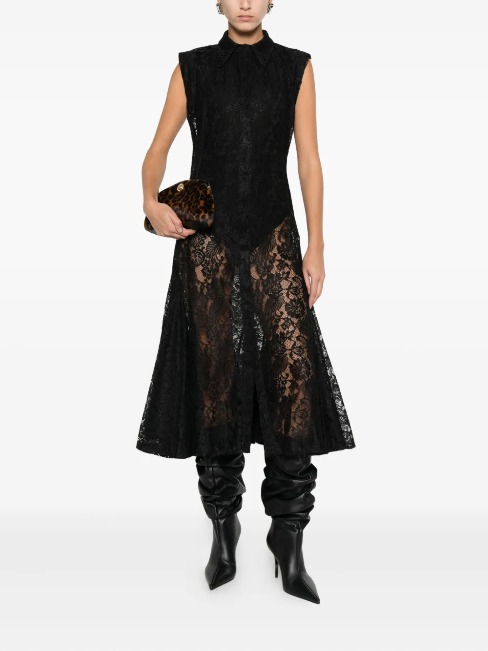 Кружевное платье миди Miau By Clara Rotescu, черный