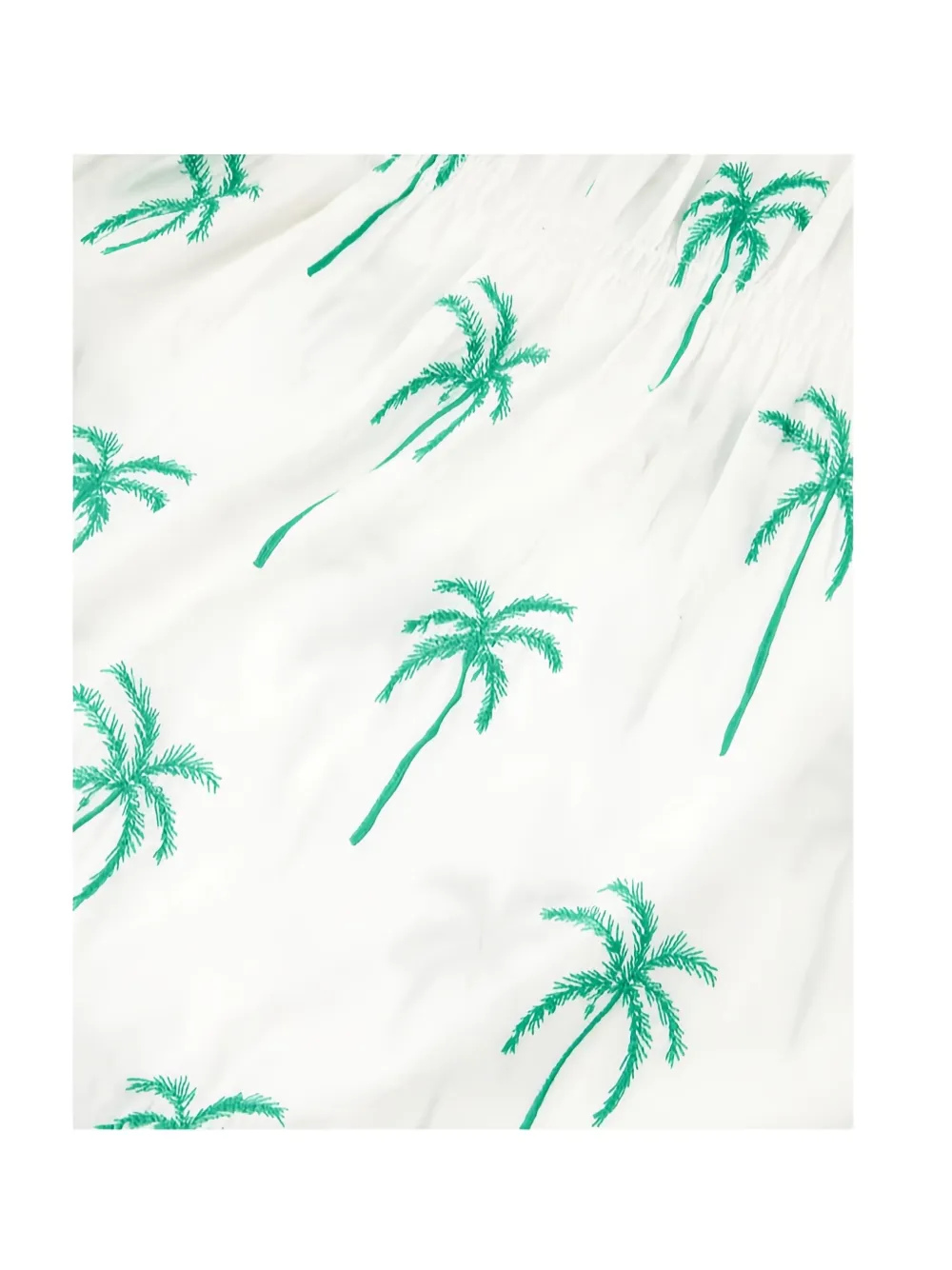 Белое платье с принтом в виде пальм, присборенным лифом, регулируемыми бретелями, застегивающимися на пуговицы, и расклешенной юбкой