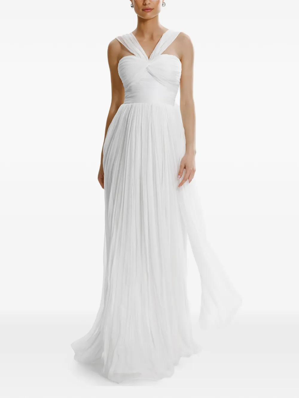 Платье макси Porter с плиссированными бретелями Framboise, белый