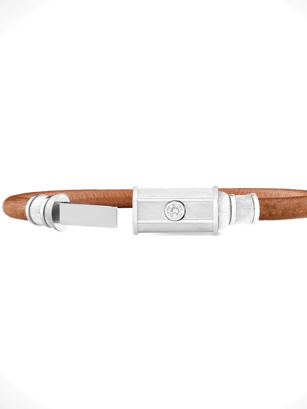 18-каратное белое золото 100%, Кожа теленка 100%, Бриллиант 100%
