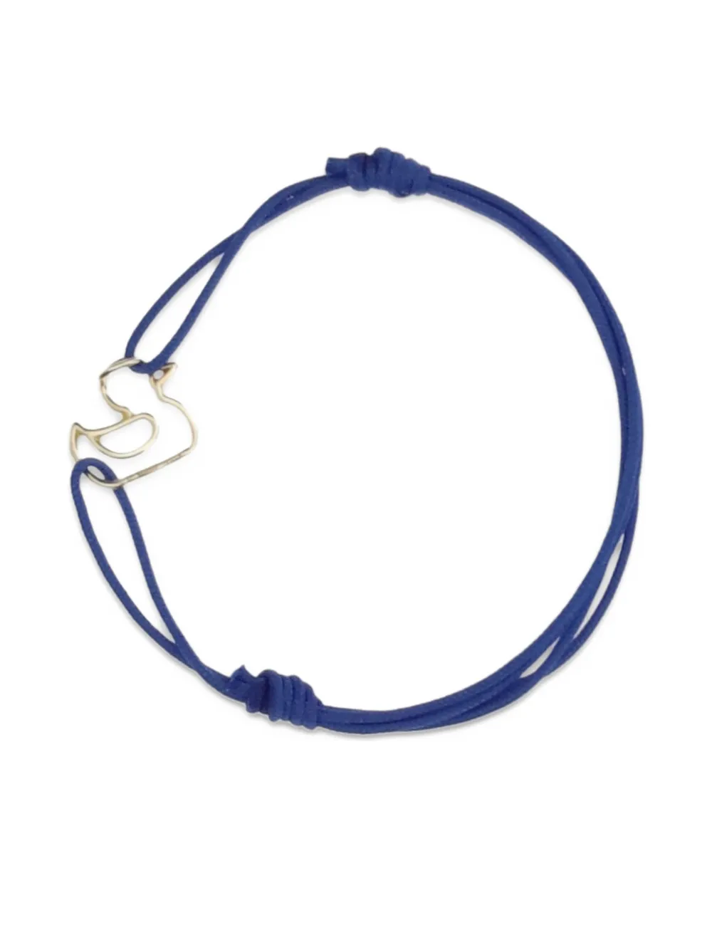 Желтый и синий эмалированный узор "ромашка", регулируемая застежка, хлопковый шнур, подвеска-утка из желтого золота 9 карат. Обычное ежедневное использование и воздействие внешних факторов могут снизить блеск драгоценных камней и золотых поверхностей. Для ухода используйте специальные неабразивные средства, предназначенные для чистки украшений.
