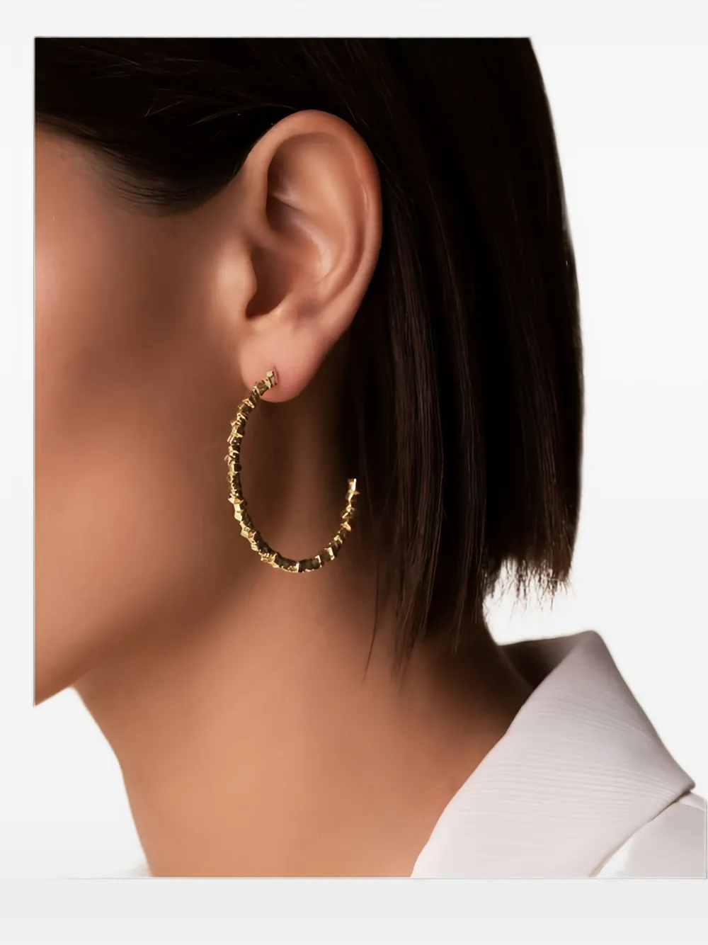 Желтый дизайн в виде полукольца гравированное лого Эти серьги поставляются в паре. Обычное ежедневное использование и внешние факторы могут снижать блеск драгоценных камней и золотых поверхностей. Для ухода используйте специальные неабразивные средства, предназначенные для чистки ювелирных изделий.