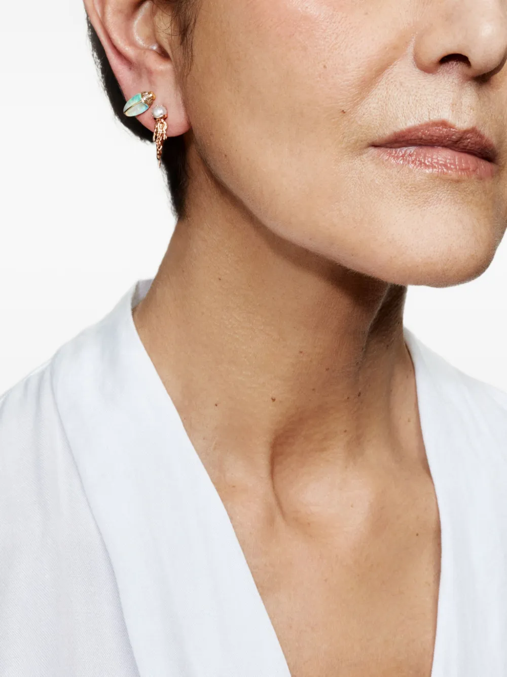 Обычное ежедневное использование и внешние средства могут снизить блеск драгоценных камней и золотых поверхностей. Для ухода используйте специальные неабразивные средства, специально предназначенные для чистки ювелирных изделий.