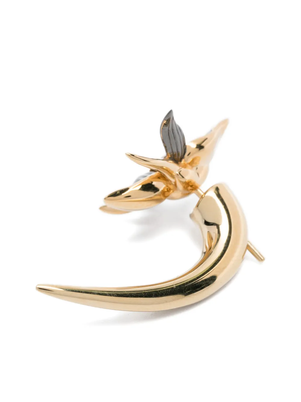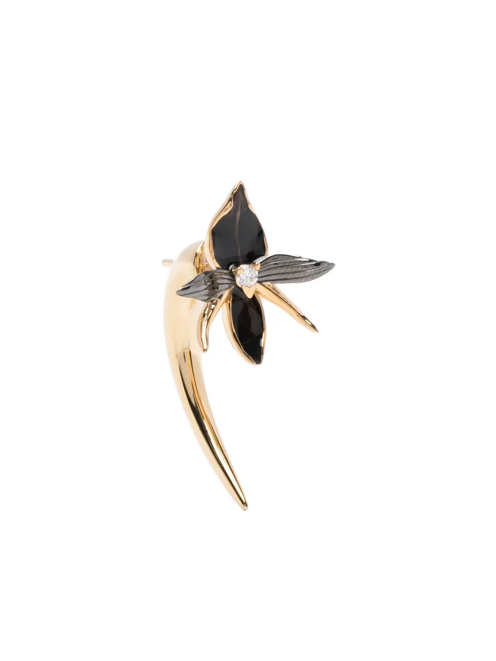 Оправа из желтого золота вермеиль и паве-крепление с круглой огранкой бриллиантов, украшение в виде черной орхидеи Эти серьги поставляются в паре. Обычное ежедневное ношение и воздействие внешних факторов могут уменьшить блеск драгоценных камней и поверхности золота. Для ухода используйте специальные неабразивные средства, предназначенные для чистки ювелирных изделий.