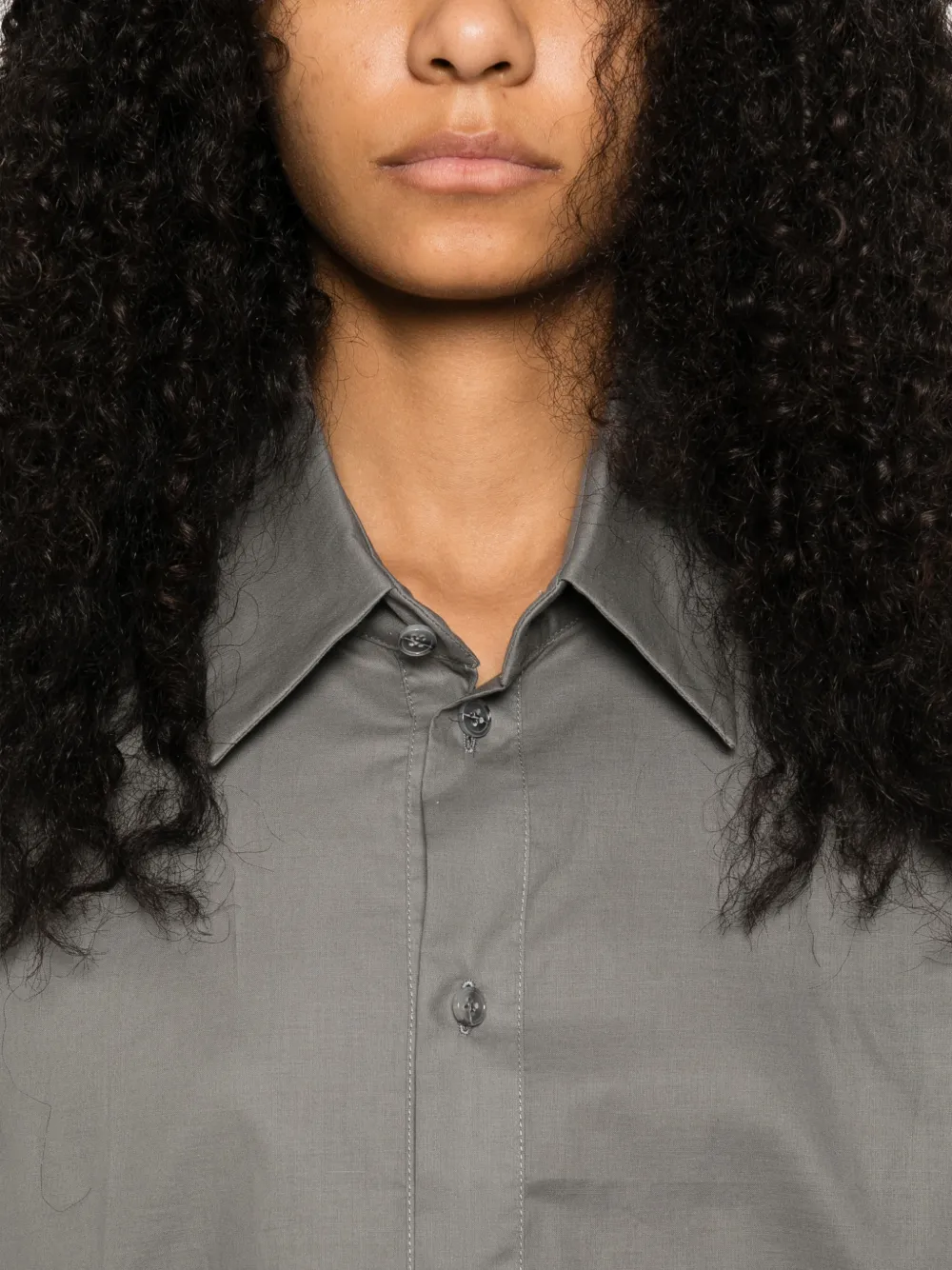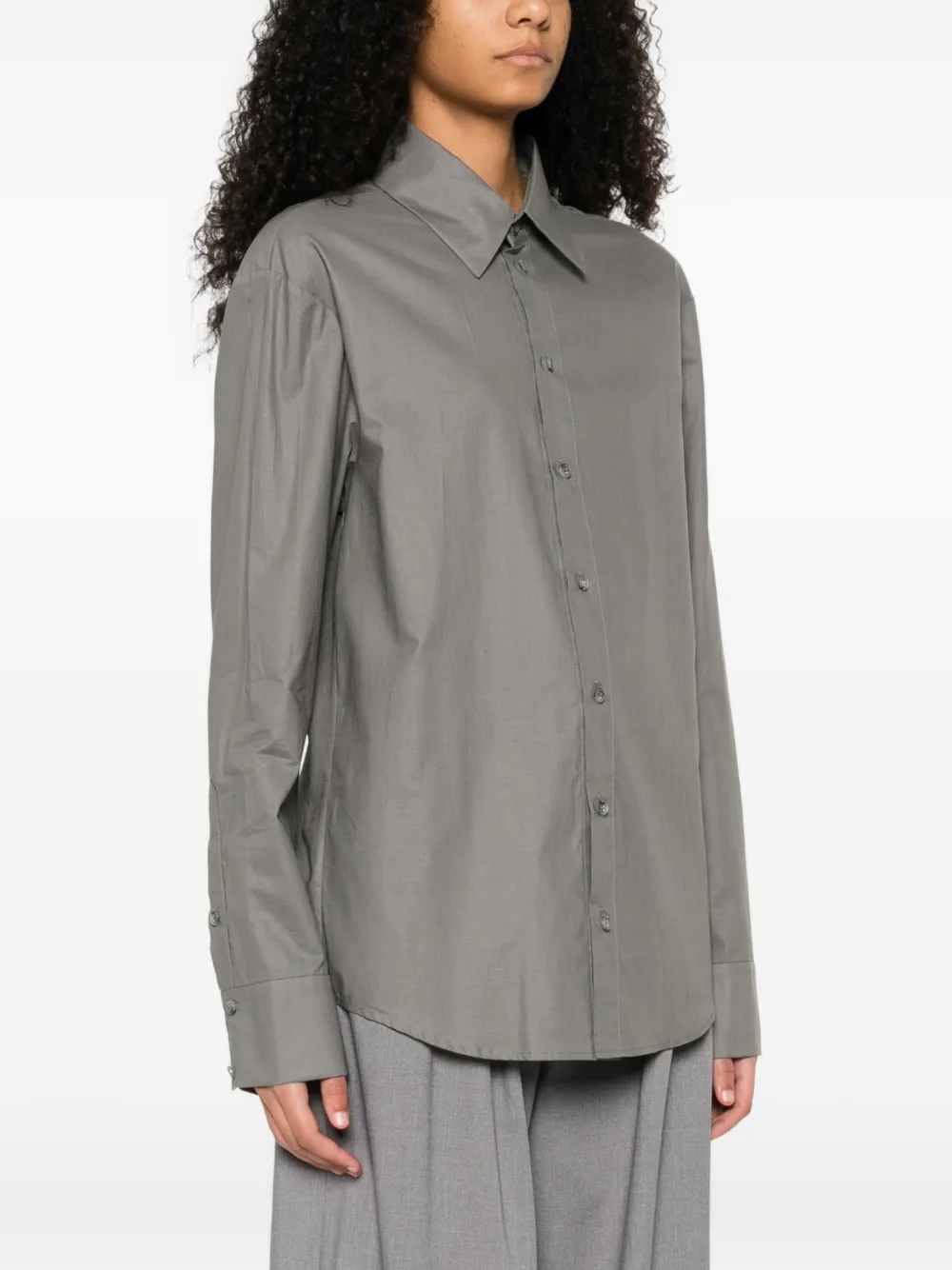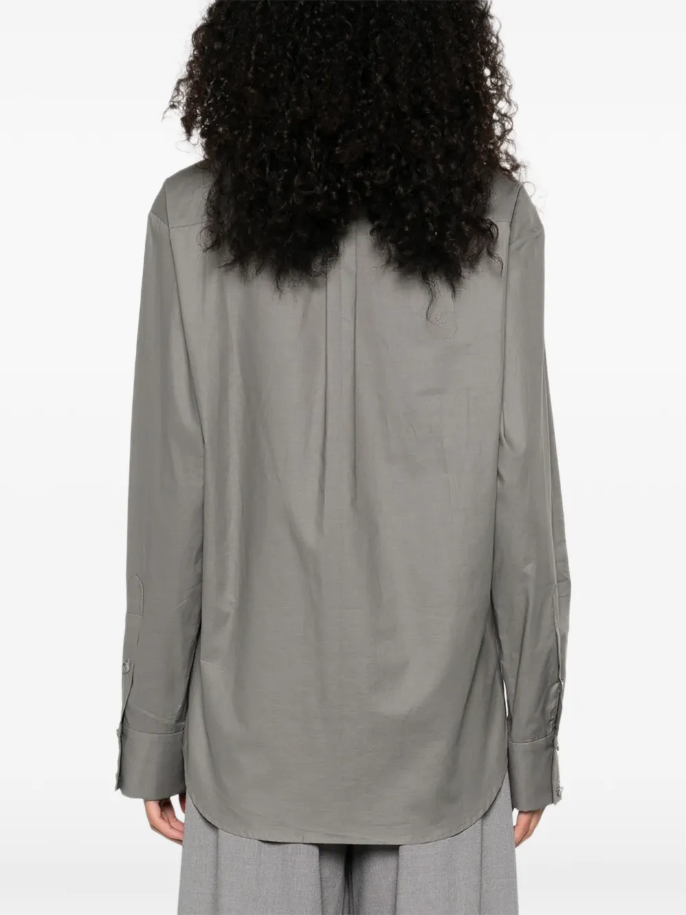 Серый цвет, застежка на пуговицах, длинные рукава, отложной воротник, манжеты на пуговицах