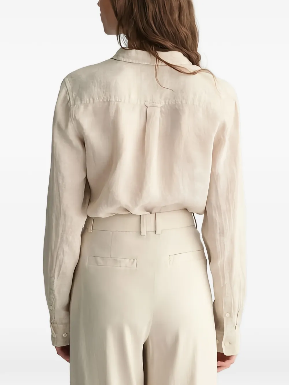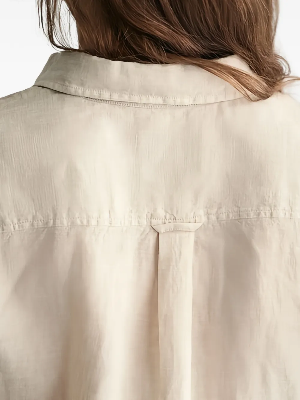 Бежевый цвет, застежка на пуговицы, длинные рукава, отложной воротник, застежка спереди на пуговицы, кокетка на спине