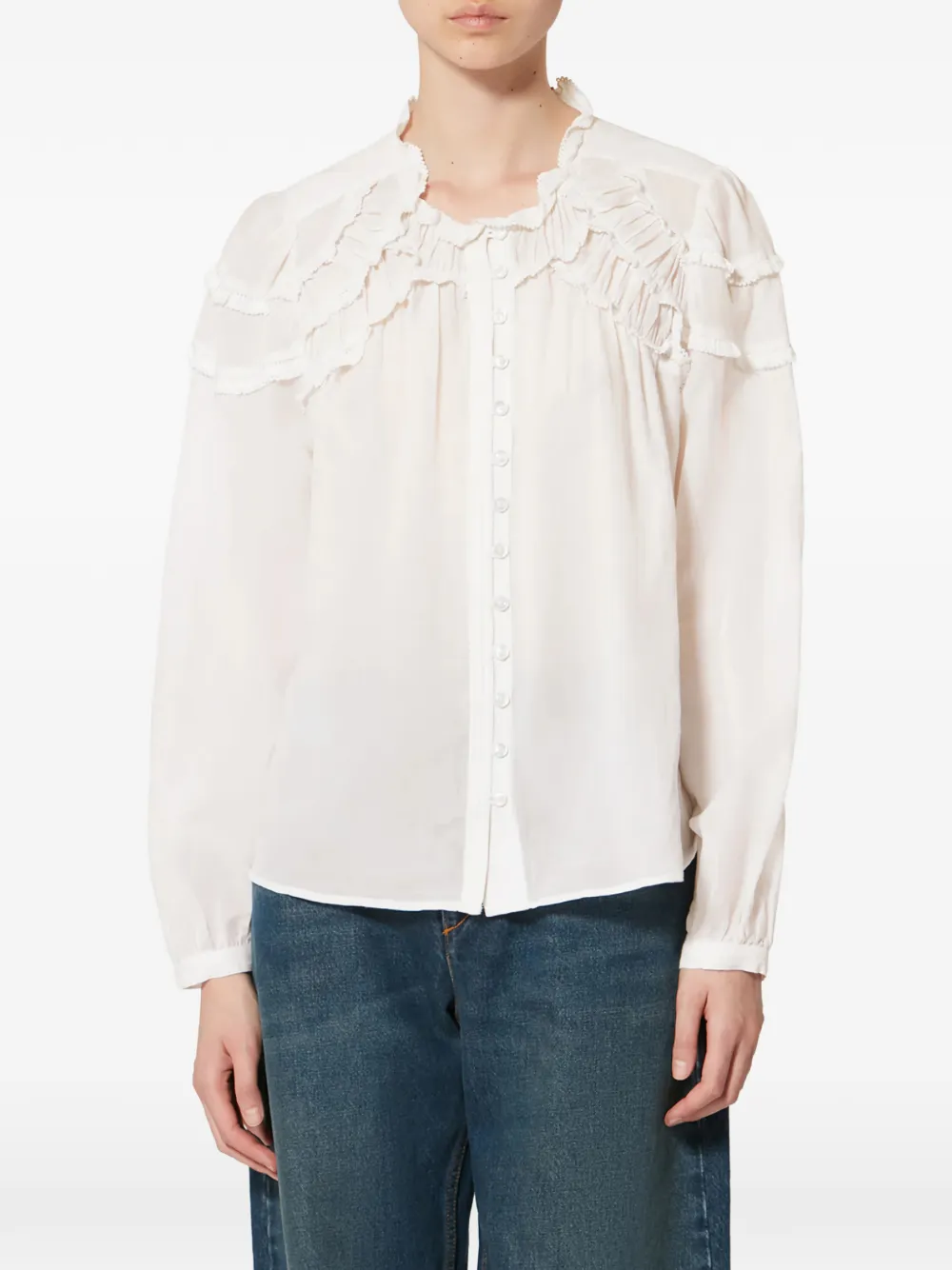 Рубашка с воланами и длинными рукавами Isabel Marant, белый