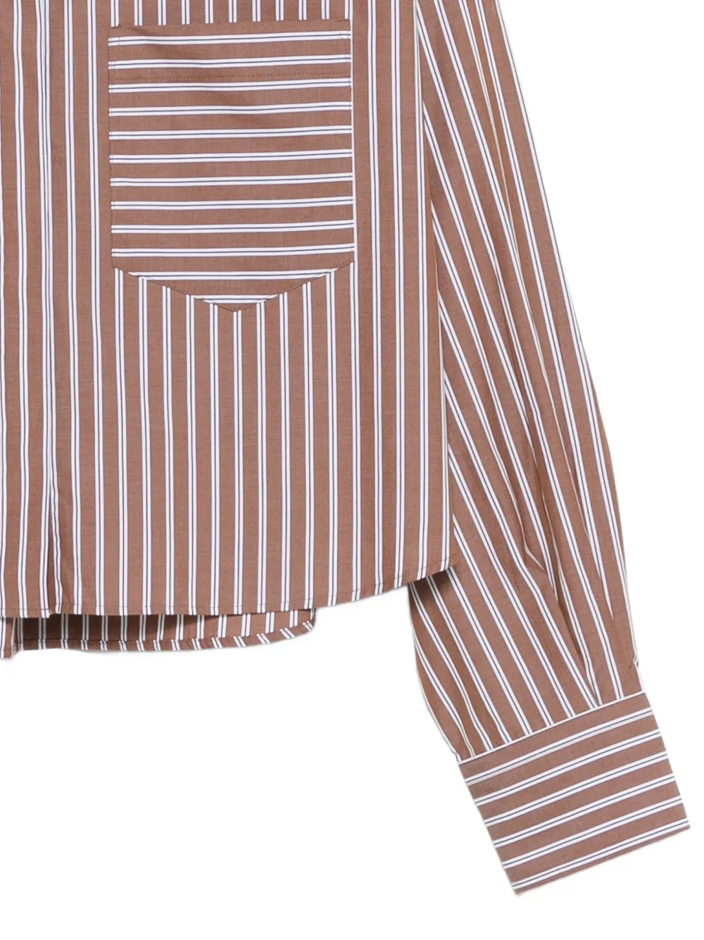 Коричневый в полоску, нагрудный карман, длинные рукава, манжеты на пуговицах, укороченный стиль