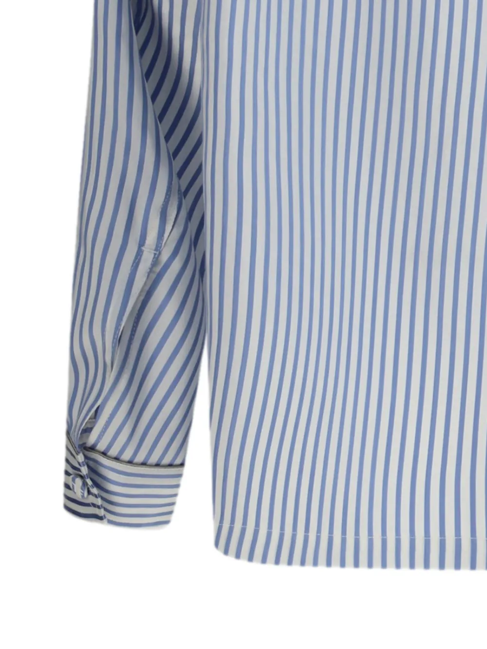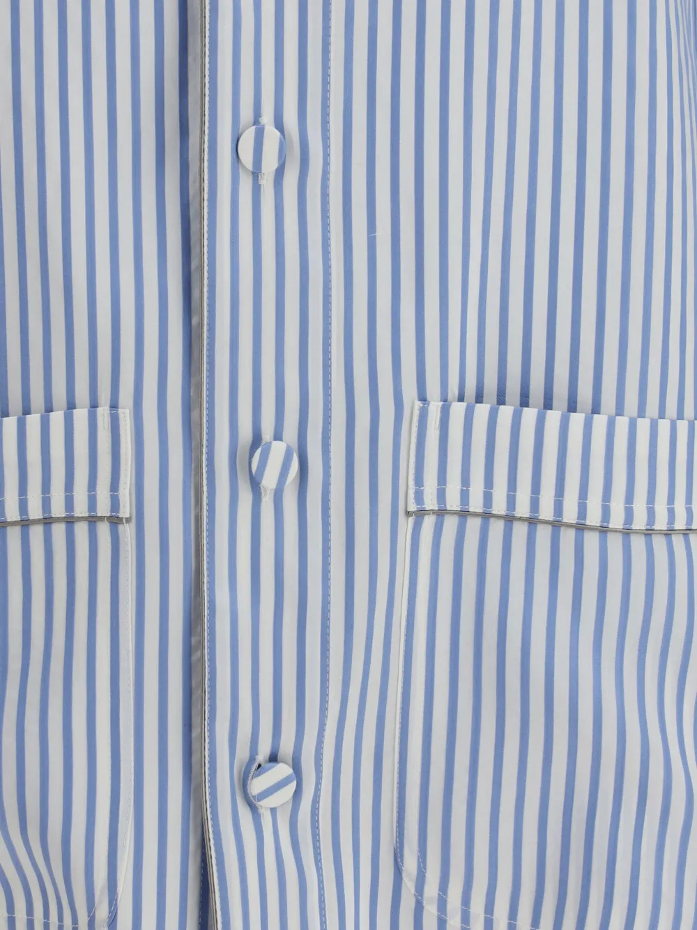 Светло-голубой в полоску, накладные карманы, застежка на пуговицы, длинные рукава