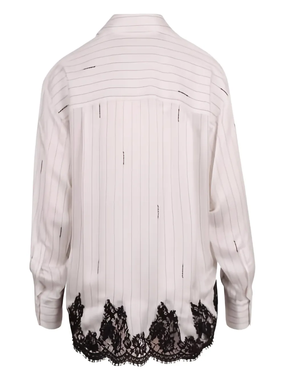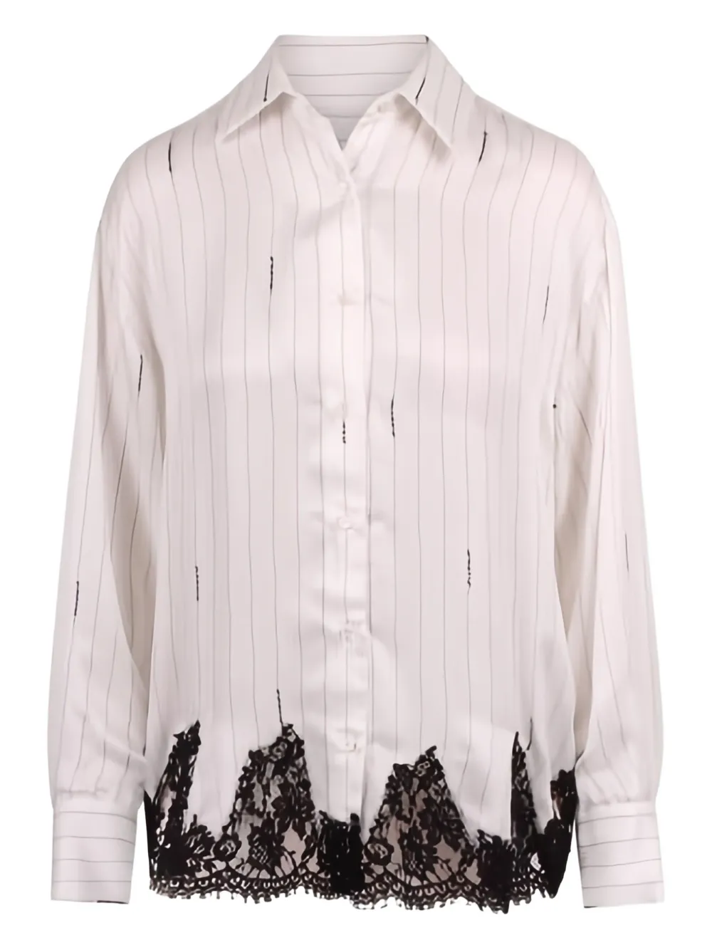 Белая рубашка в полоску с кружевной отделкой, застежкой на пуговицы, длинными рукавами и манжетами на пуговицах