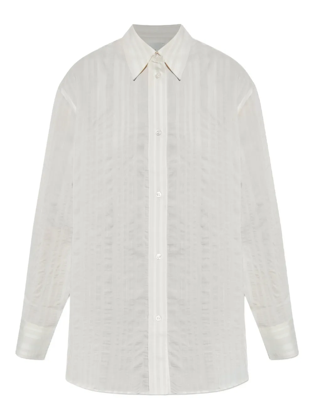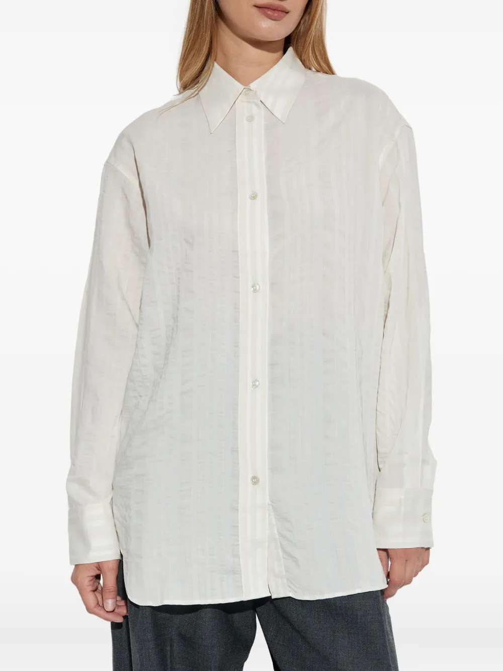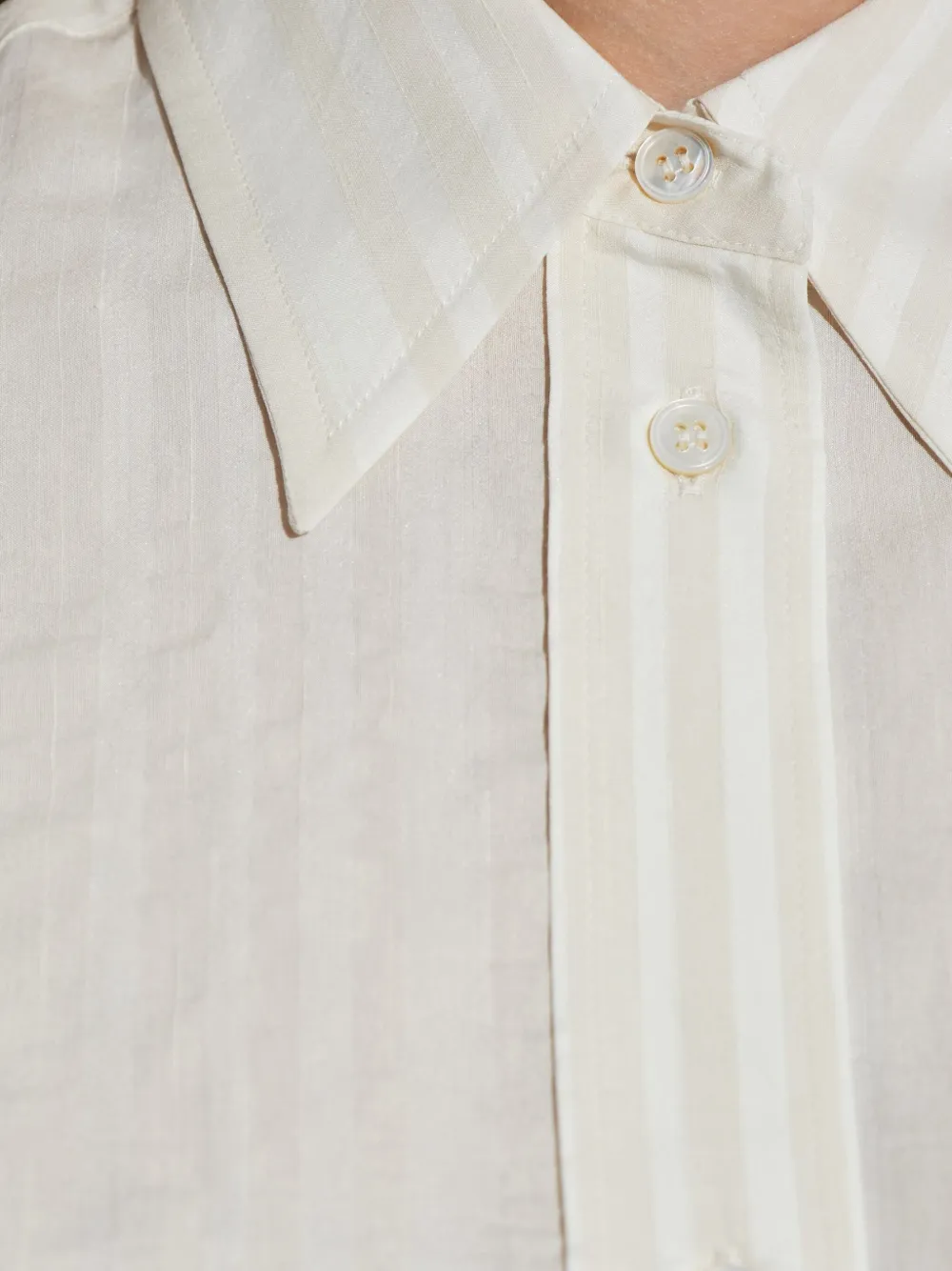 Цвет "слоновая кость"вертикальные полоскизастежка на пуговицыклассический воротникдлинные рукава