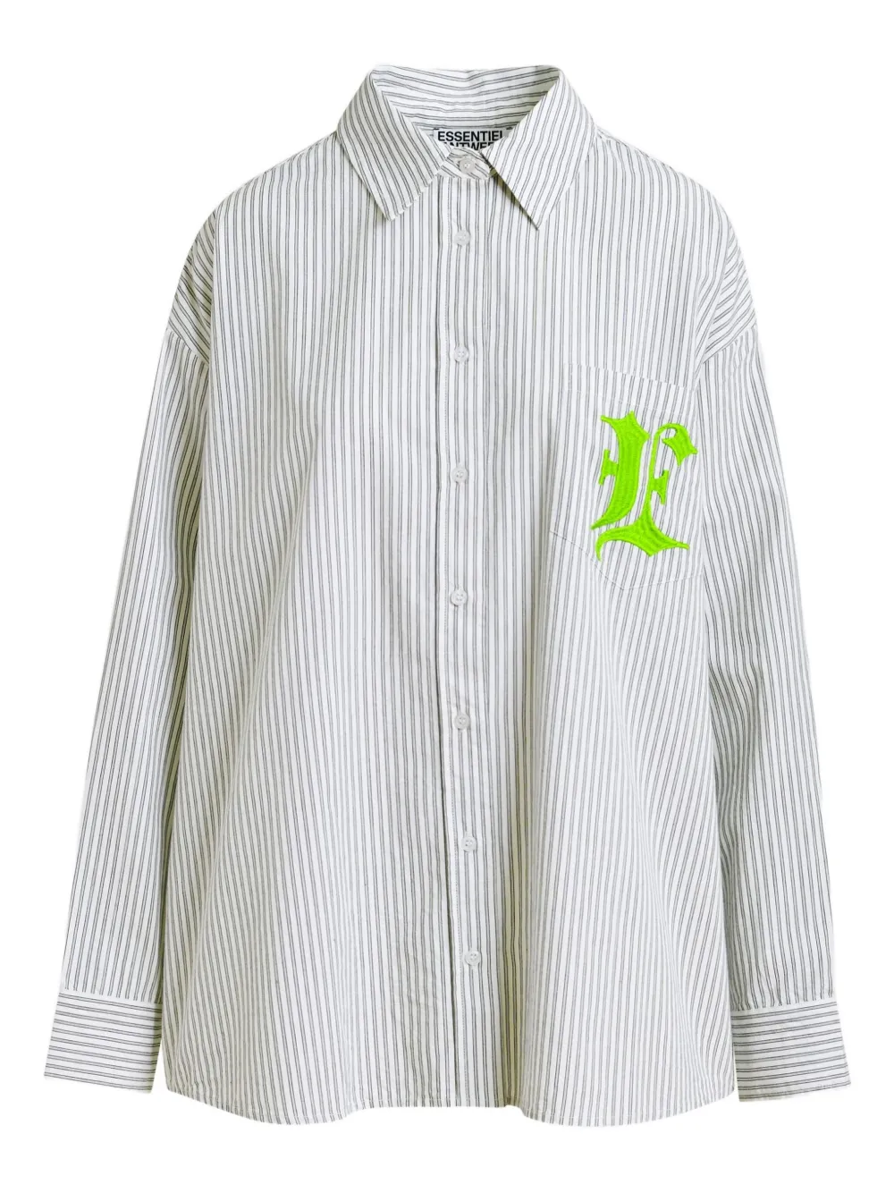 Полосатая рубашка с вышивкой Essentiel Antwerp, серый