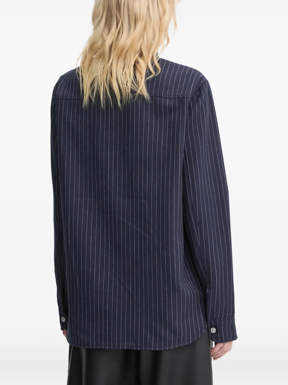 Темно-синяя рубашка в полоску на пуговицах с длинными рукавами