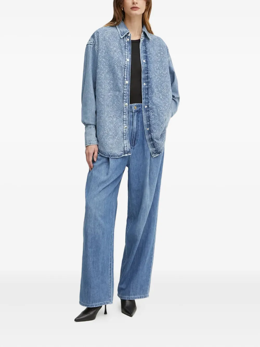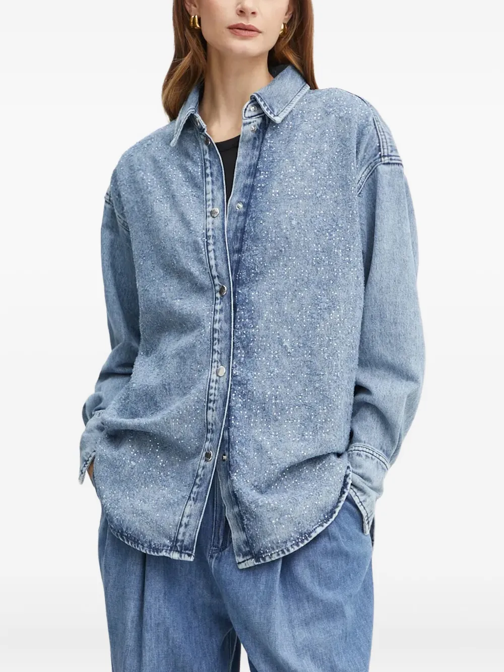 Джинсовая рубашка, украшенная кристаллами Boss, синий
