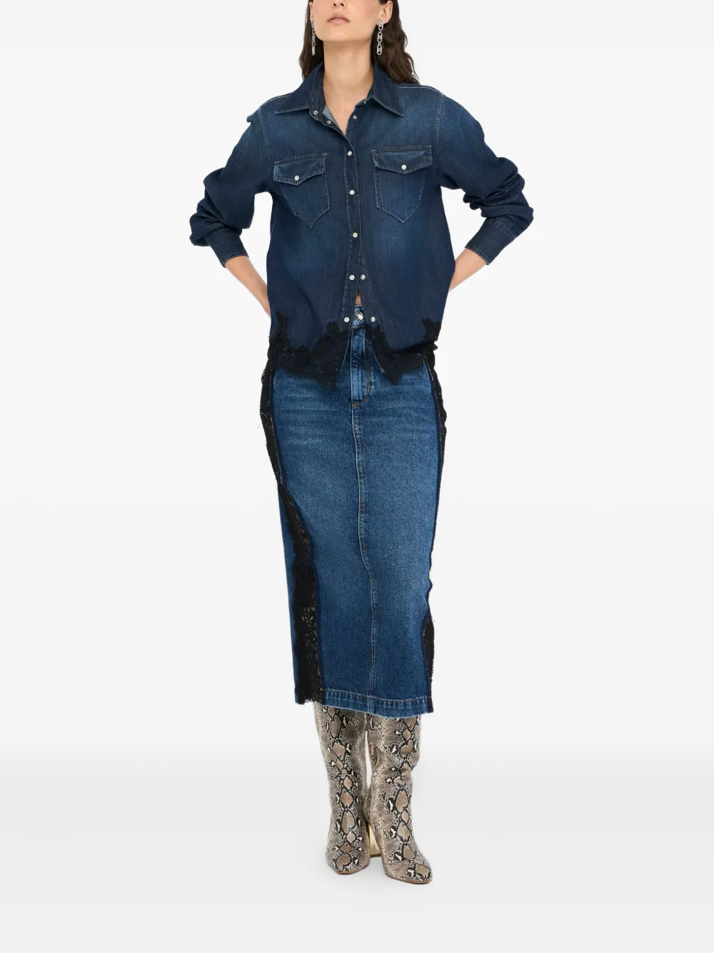 Джинсовая рубашка с кружевом Liu Jo, синий 13 778₽