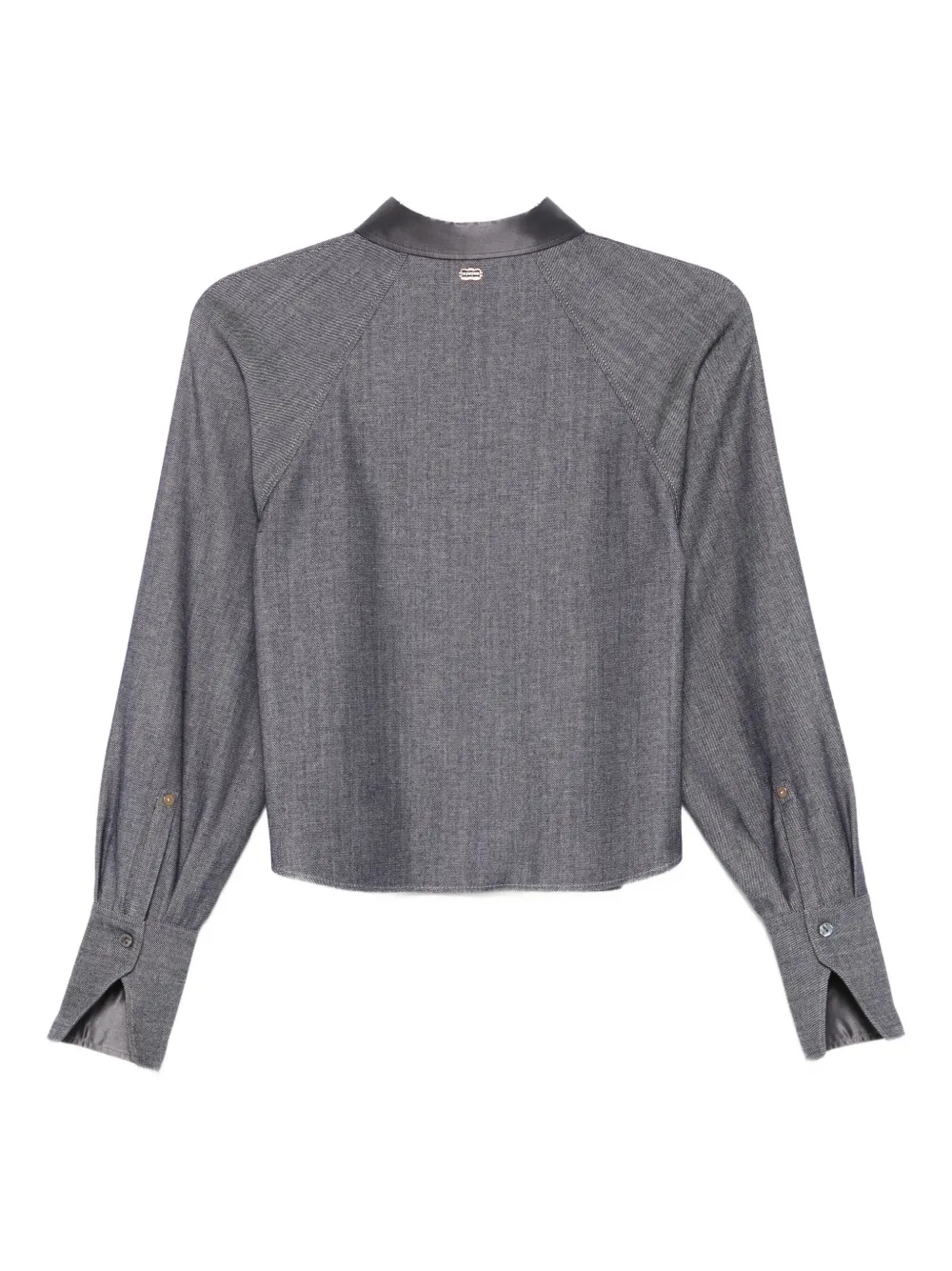 Серыйсатиновый воротник с острыми концамизастежка на пуговицыдлинные рукаваманжеты на пуговицах