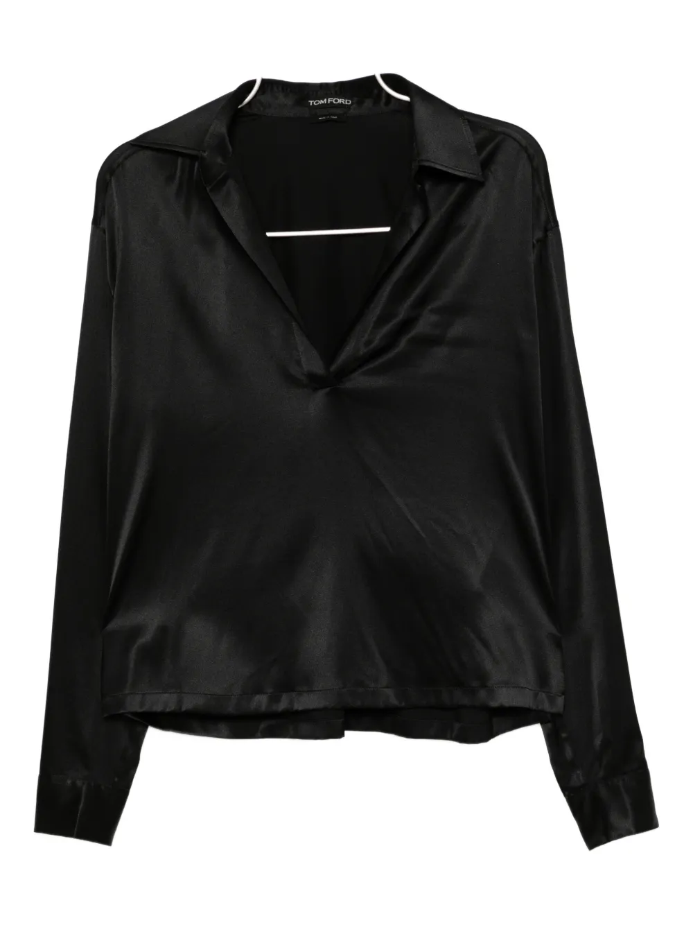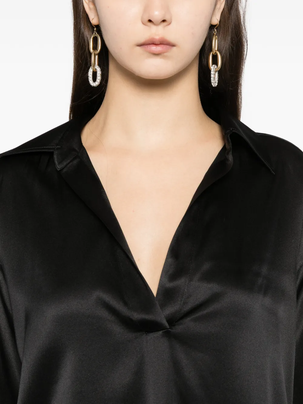Черная рубашка-поло с V-образным вырезом и рукавами на пуговицах