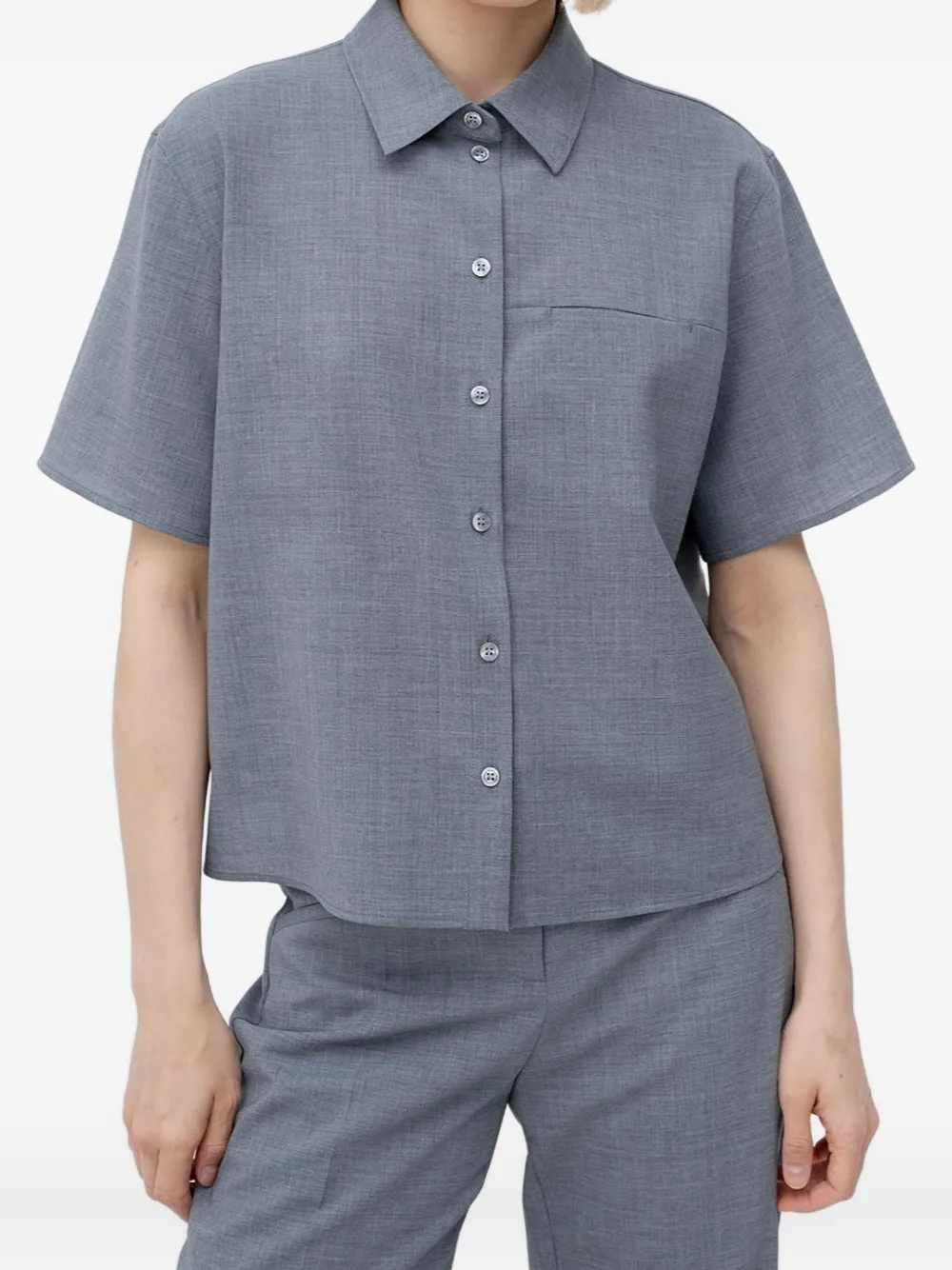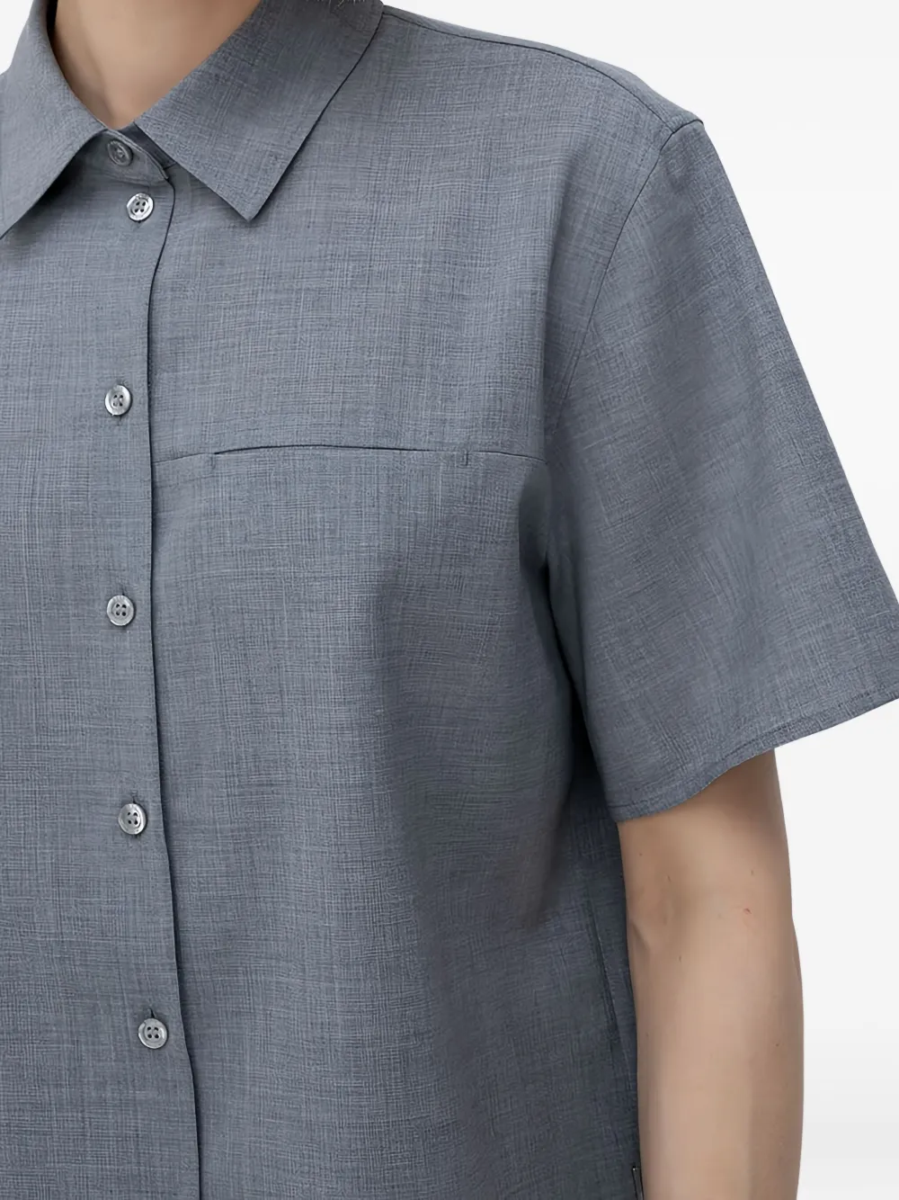 Серый, застегивающийся на пуговицы, с короткими рукавами