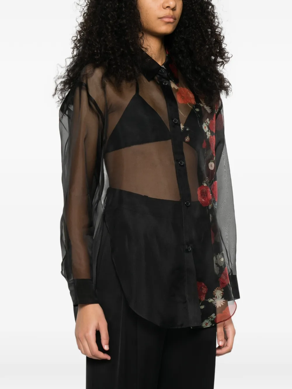 Прозрачная рубашка с цветочным принтом Khaite, черный