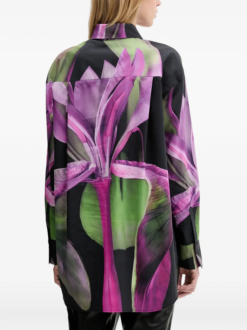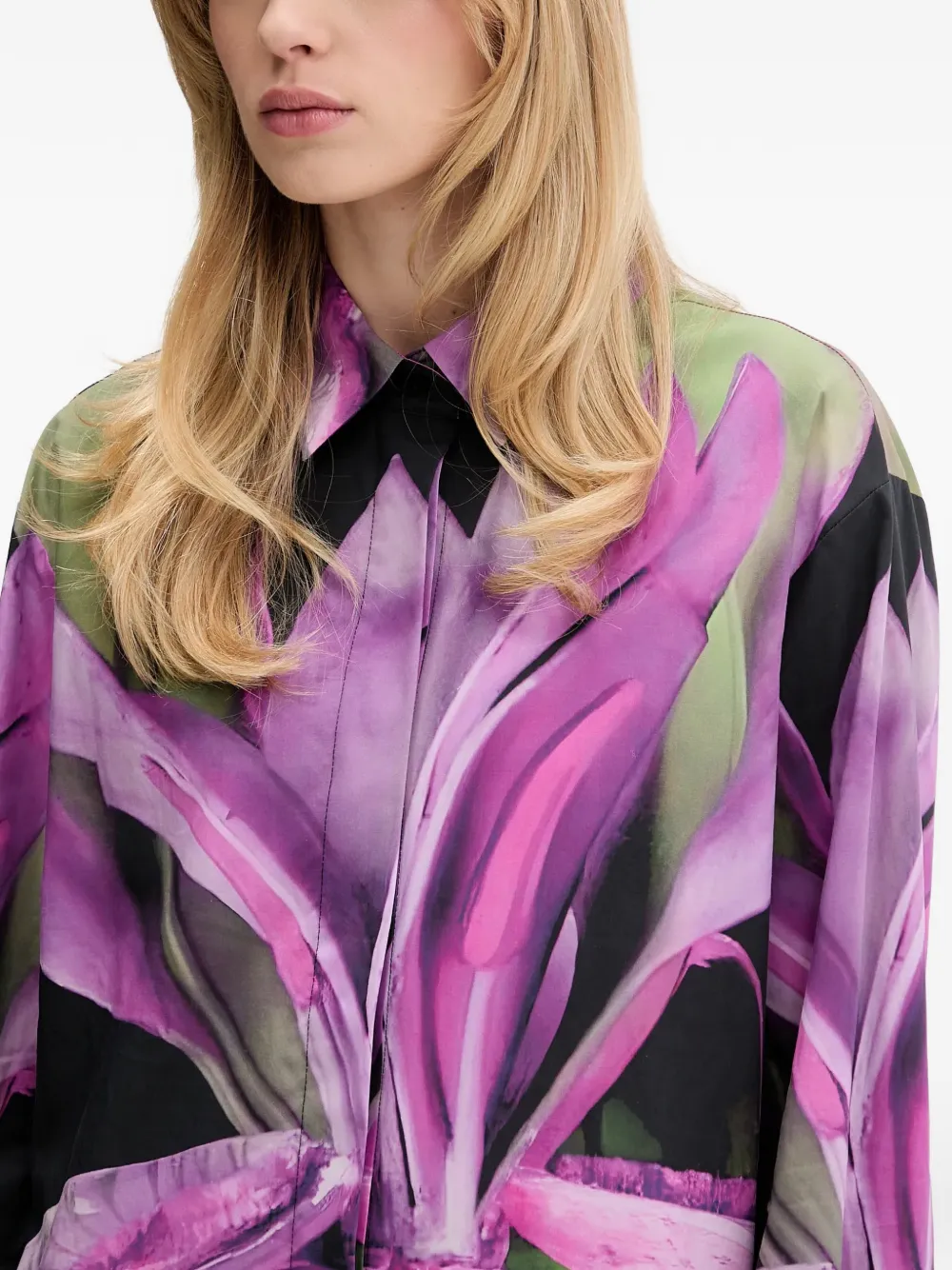 Розовый/многоцветный, с цветочным принтом, застежка на пуговицы, классический воротник, длинные рукава, манжеты на пуговицах