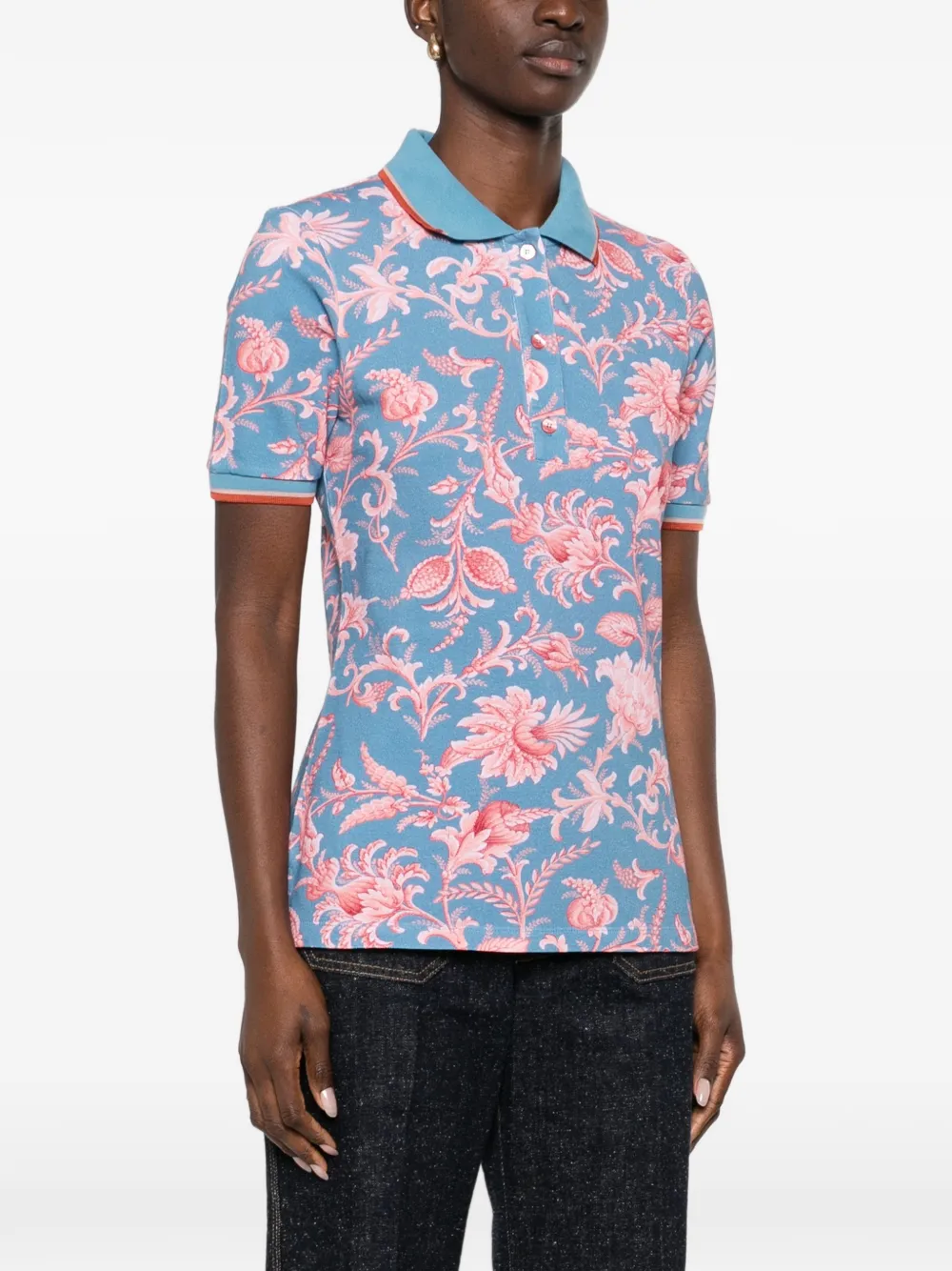 Рубашка поло с цветочным принтом Etro, синий