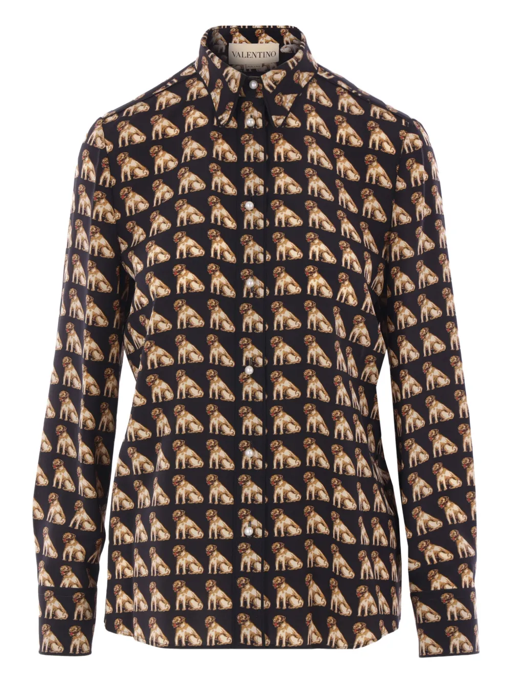 Шелковая рубашка с принтом Valentino Garavani, черный