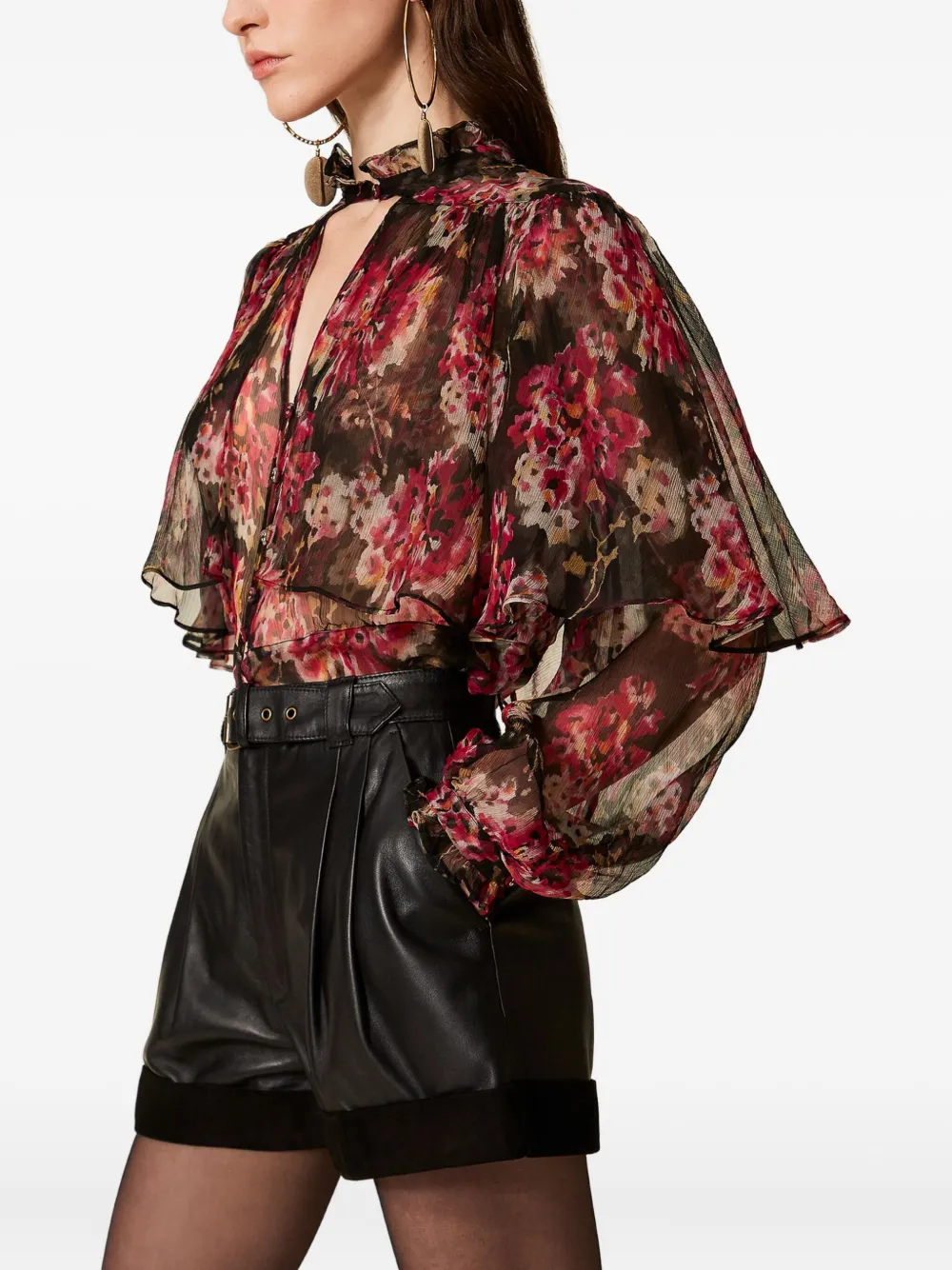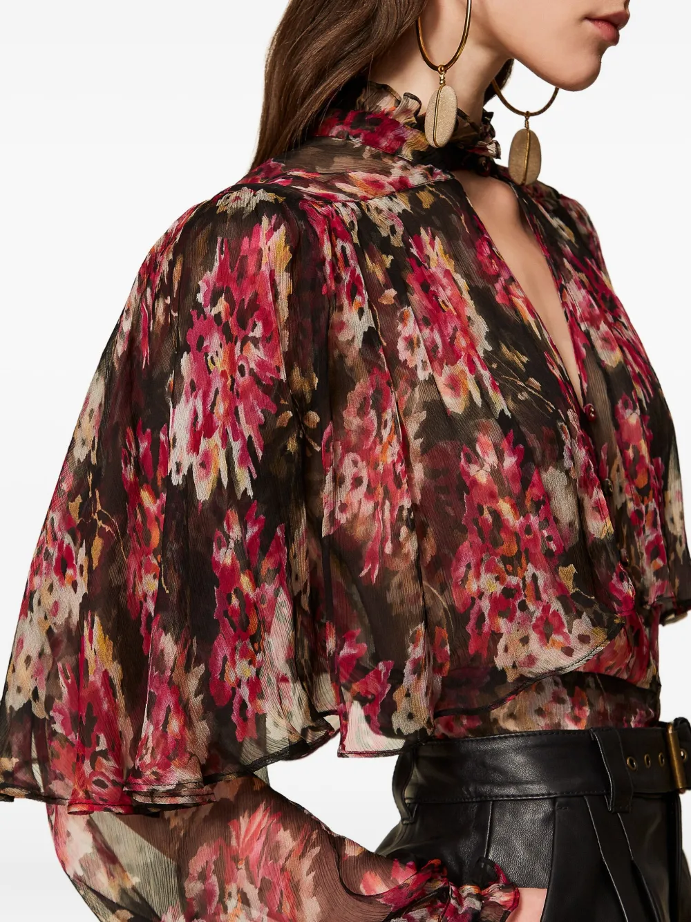 Рубашка с оборками и цветочным принтом Twinset, розовый
