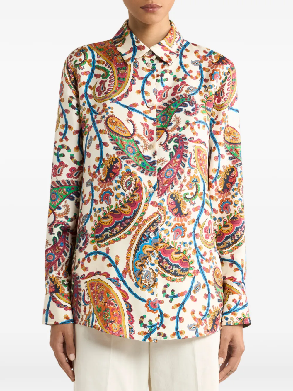 Шелковая рубашка с принтом пейсли Etro, белый