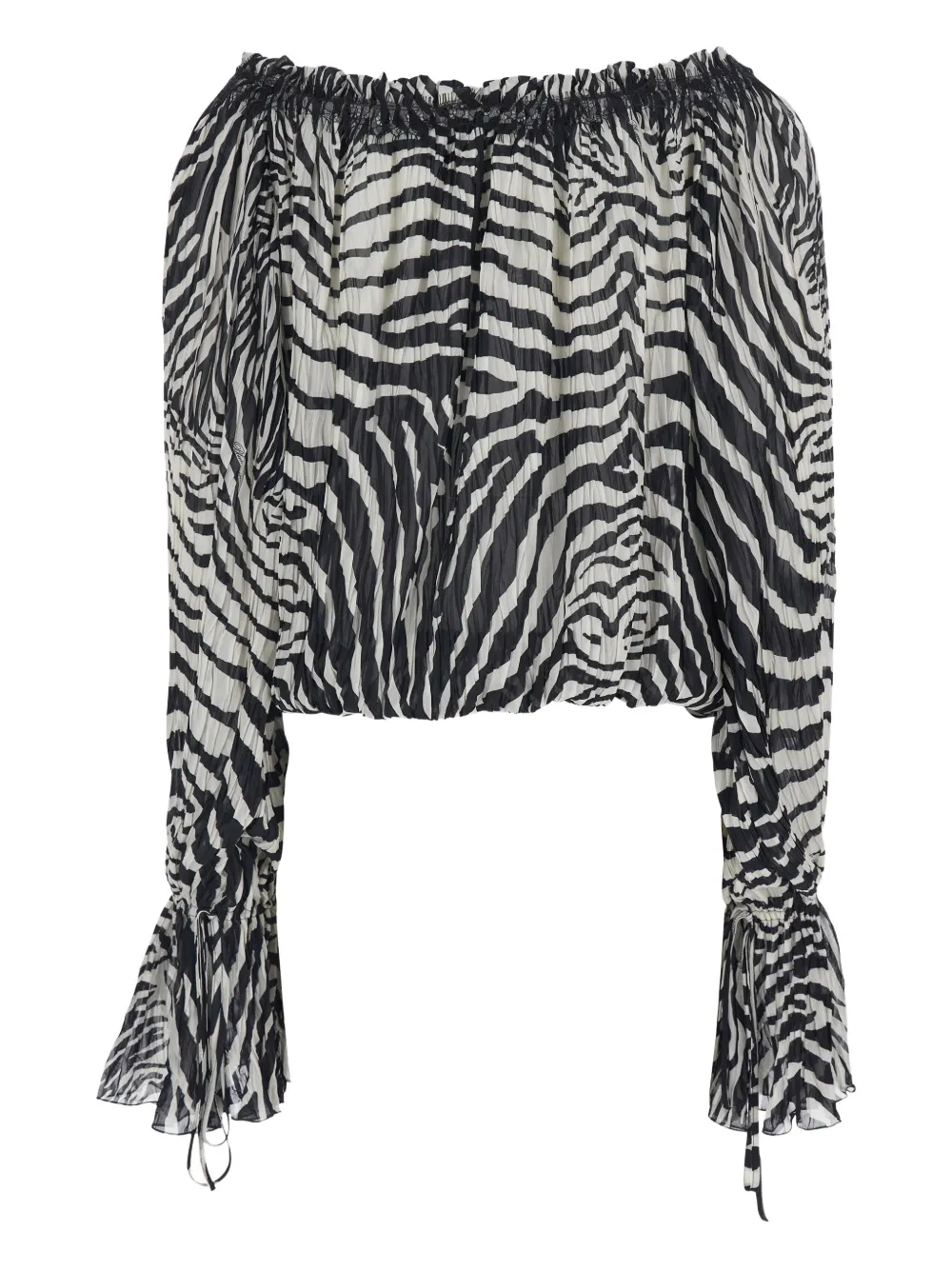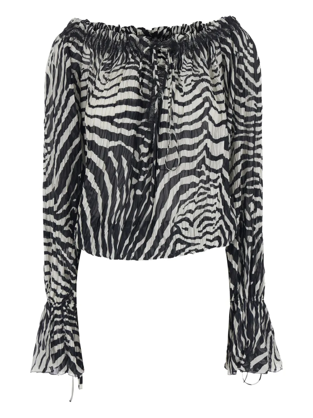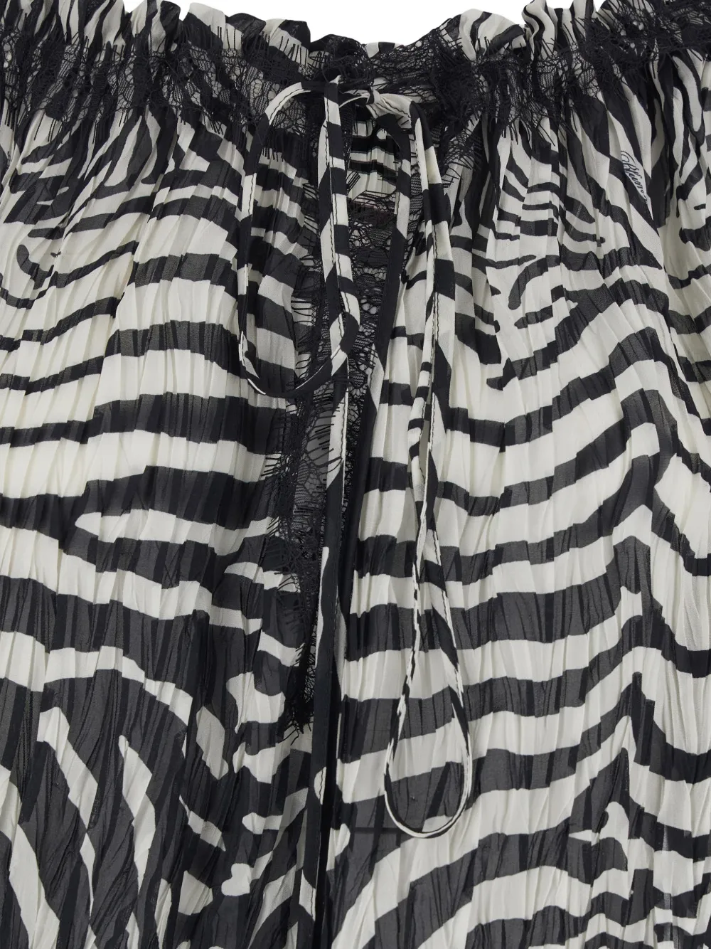 Черно-белый принт зебры, кружевные детали, завязки, длинные рукава