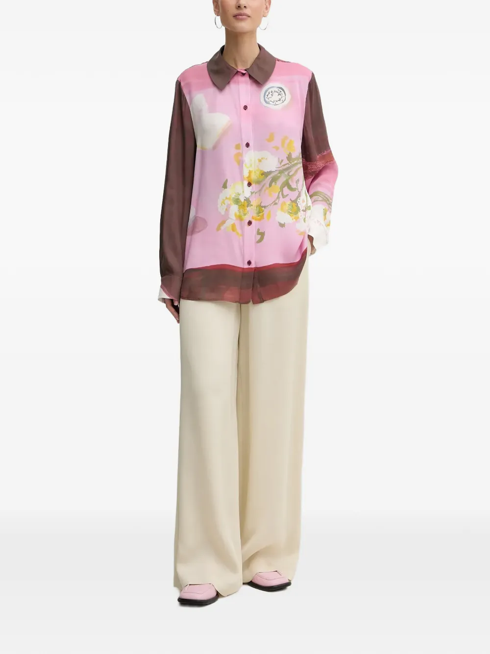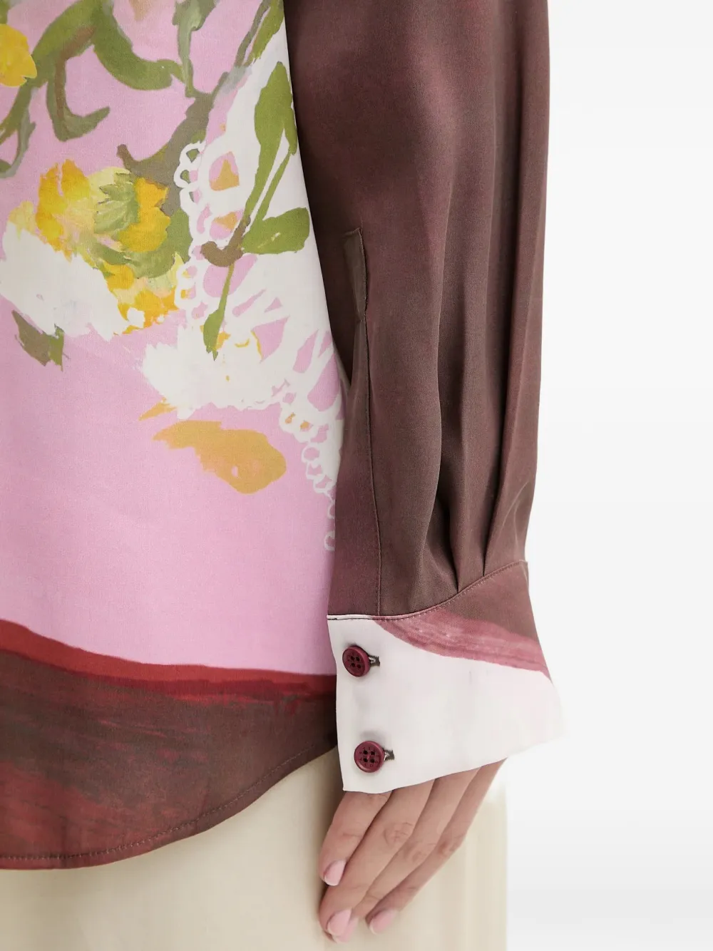 Розовая рубашка с цветочным принтом, застежкой на пуговицы, длинными рукавами, воротником и манжетами на пуговицах