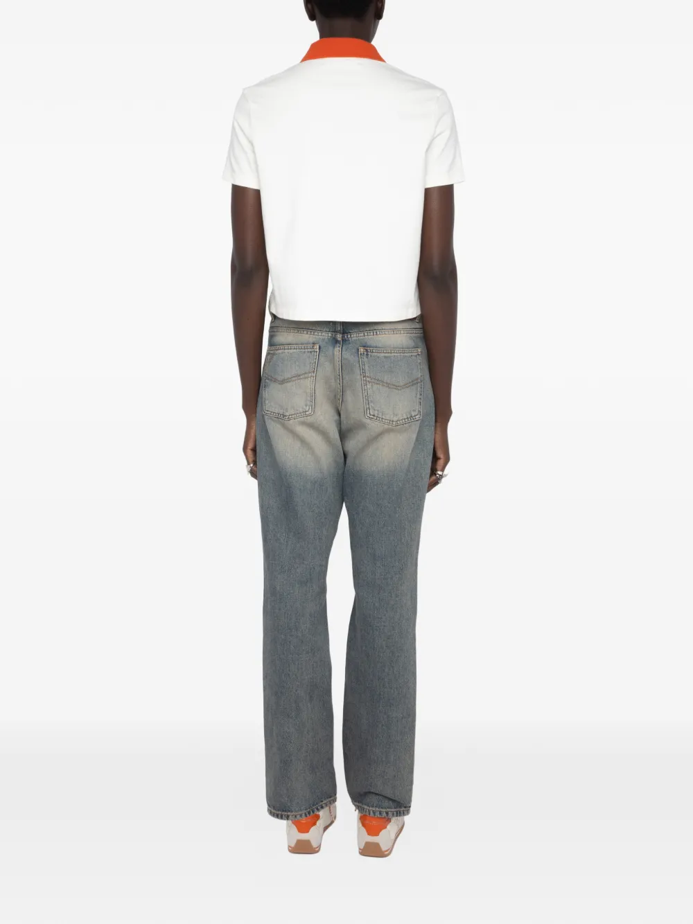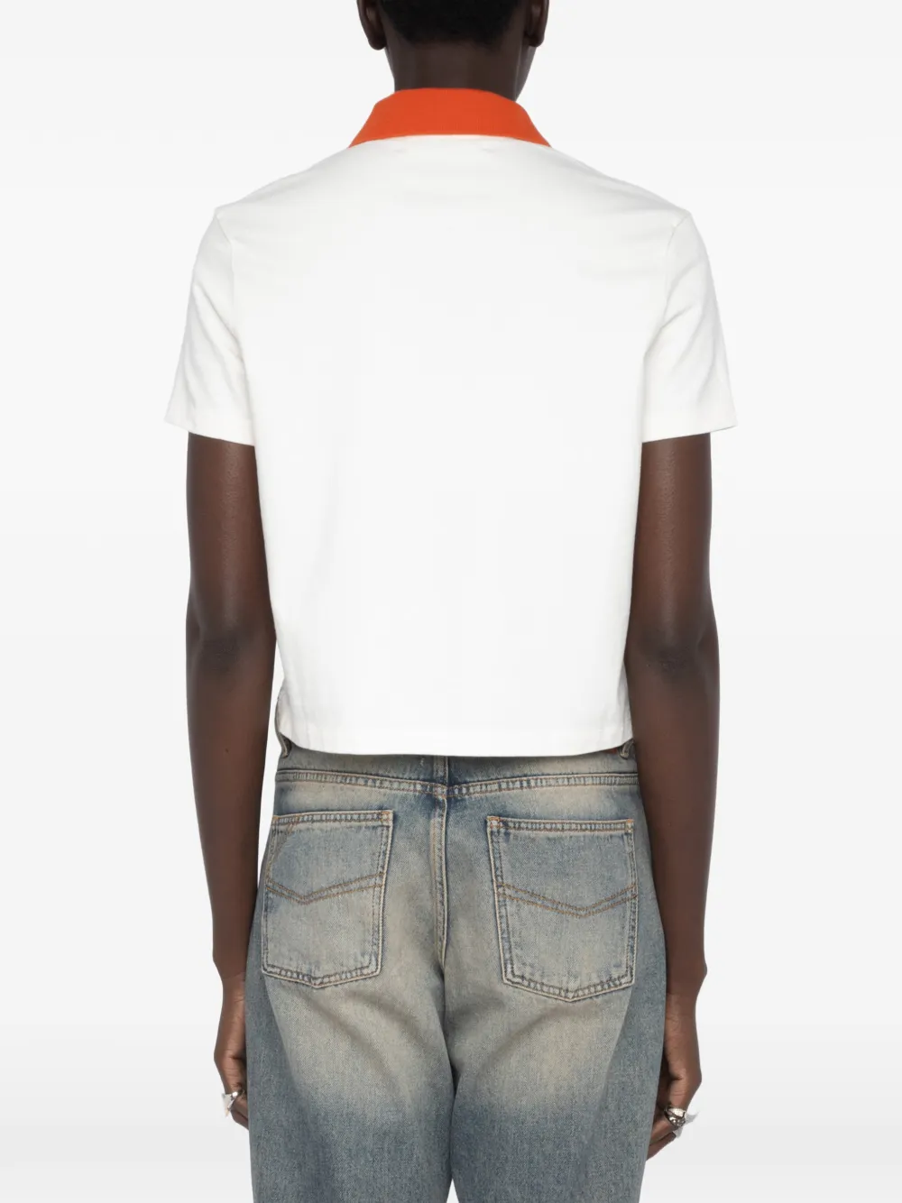 Кремово-белая рубашка с оранжевым воротником, мотивом крыльев, короткими рукавами, застежкой на пуговицы, из хлопка
