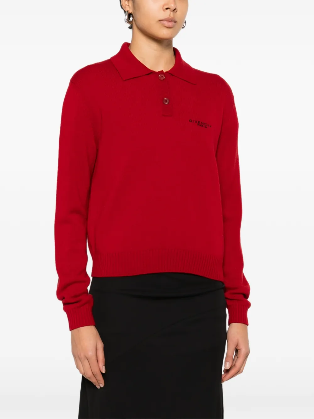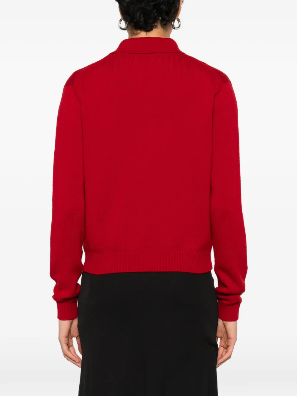 Темно-красный джемпер с воротником поло, застежкой на пуговицы, длинными рукавами и логотипом