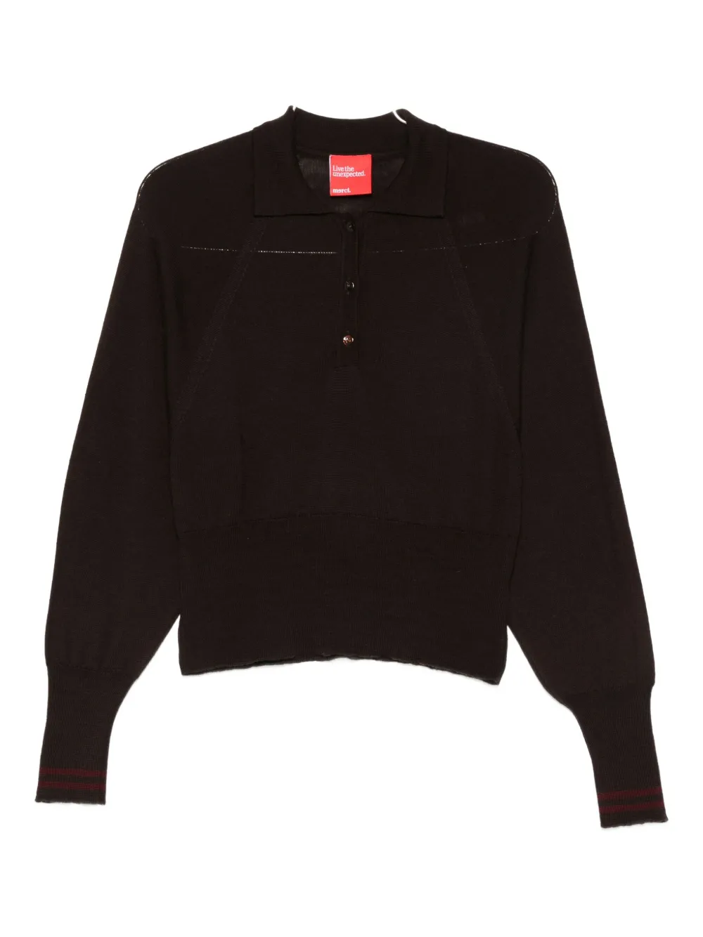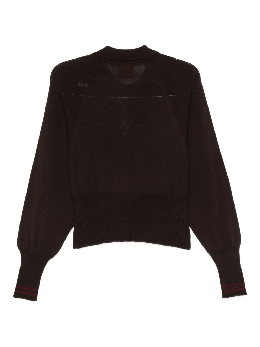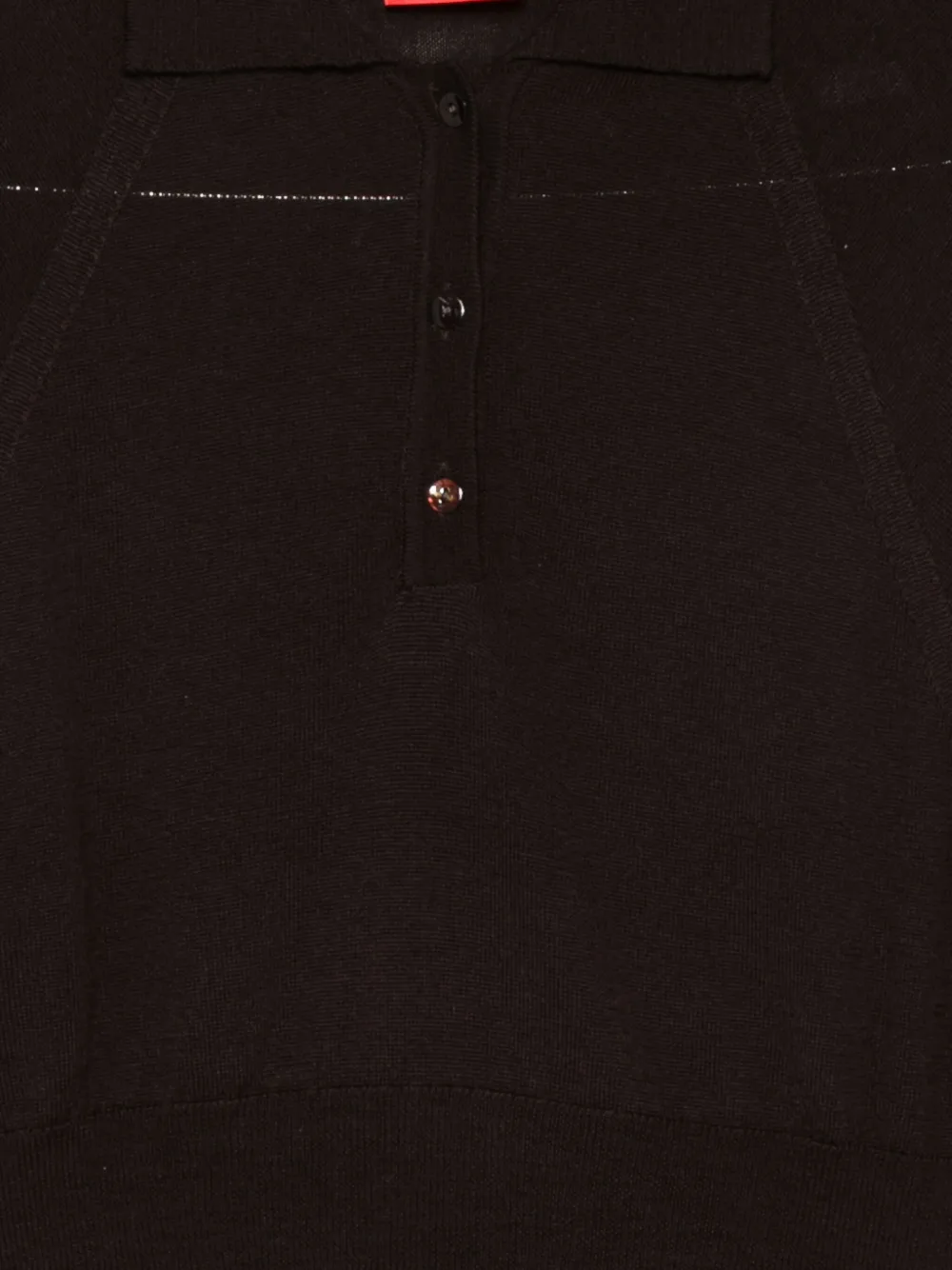 Коричневый поло с воротником, застежкой на пуговицы, ребристыми манжетами и подолом