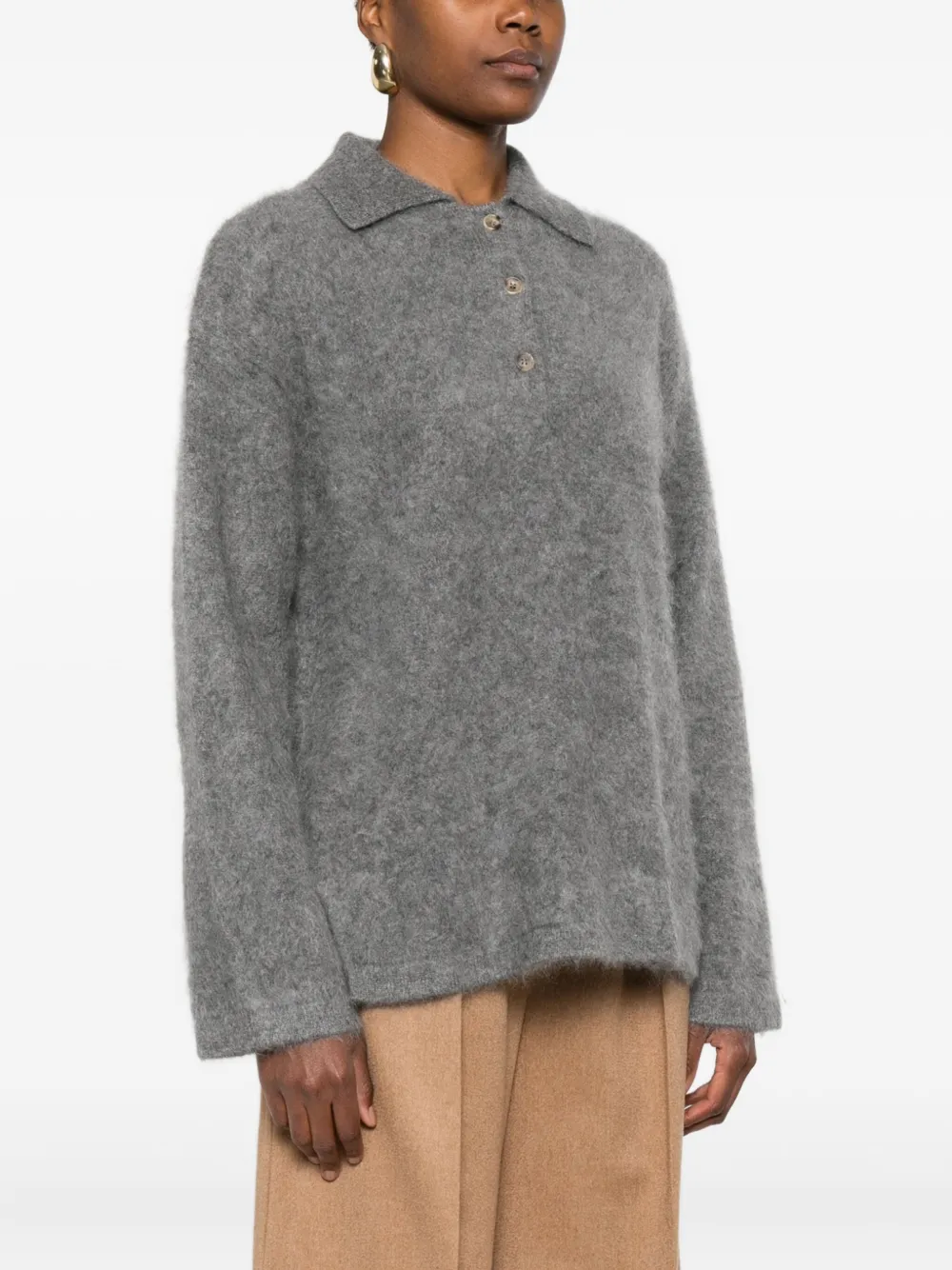 Вязаное поло с эффектом браширования Soft Goat, серый