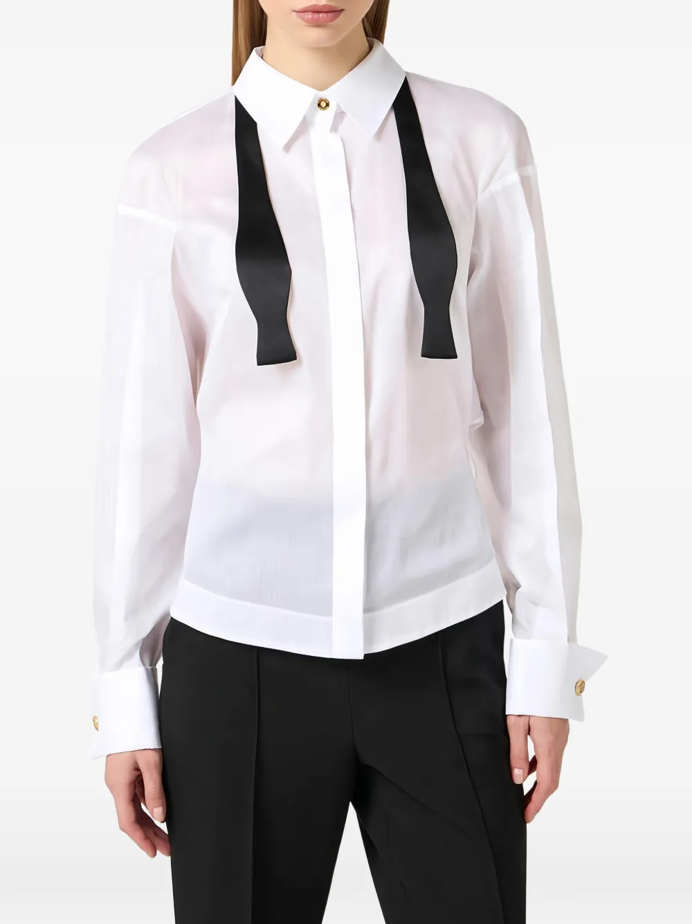 Белая и черная рубашка с классическим воротником и длинными рукавами