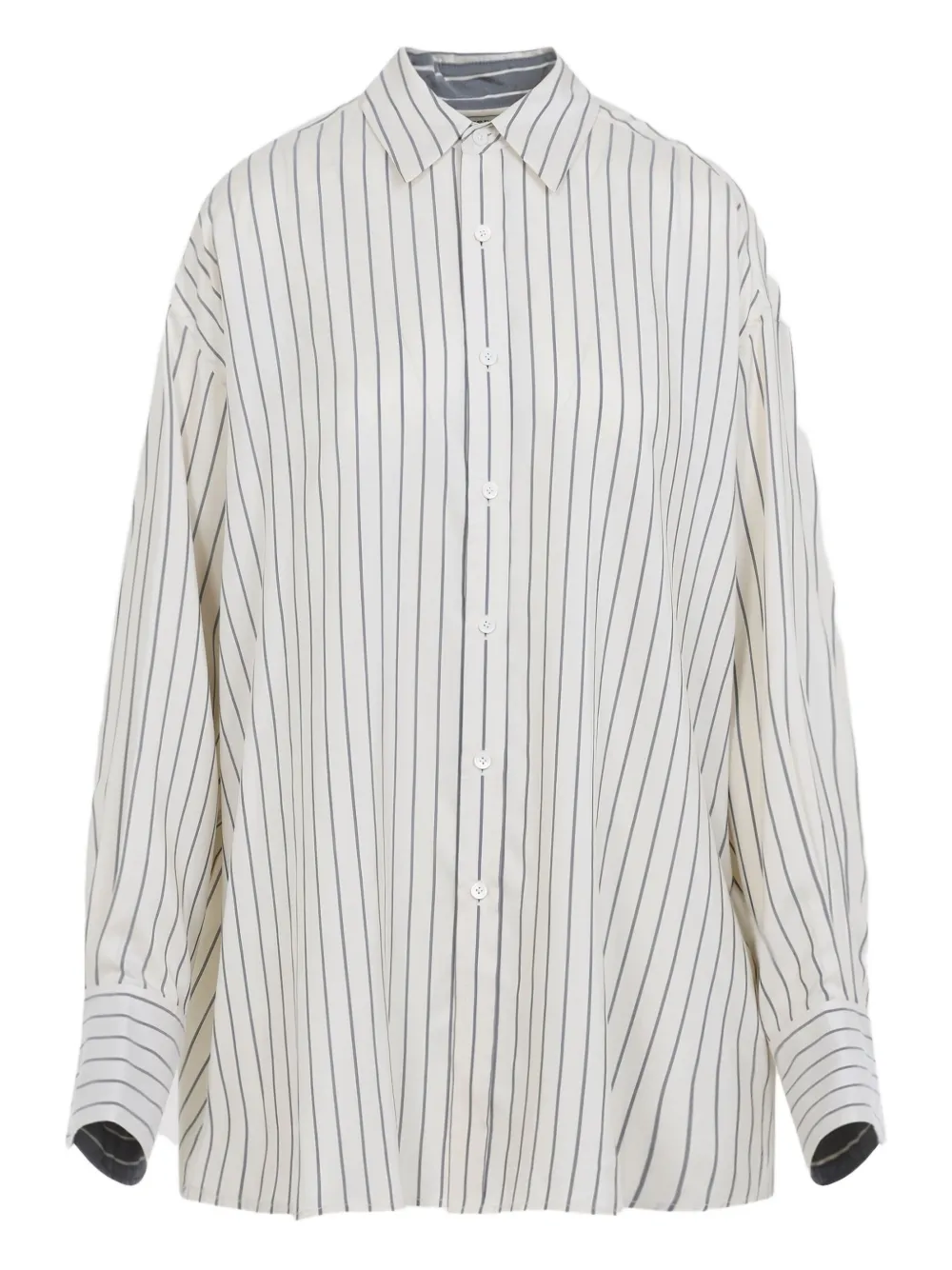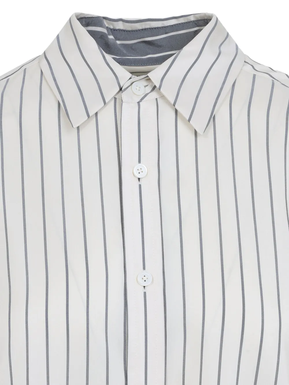 Молочно-белый шелк полосатый узор длинные рукава застежка на пуговицы воротник