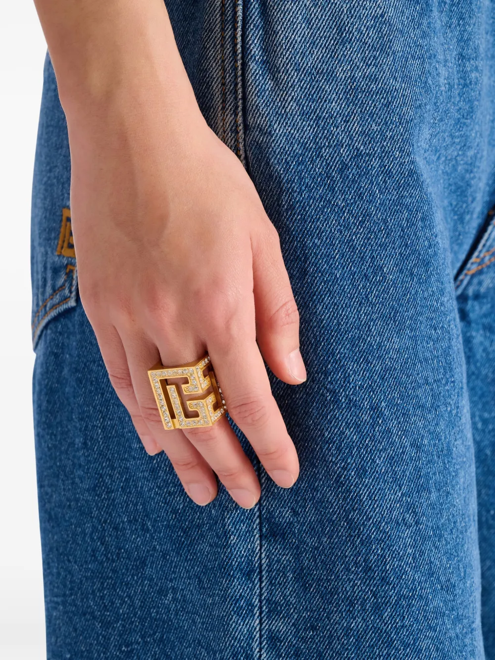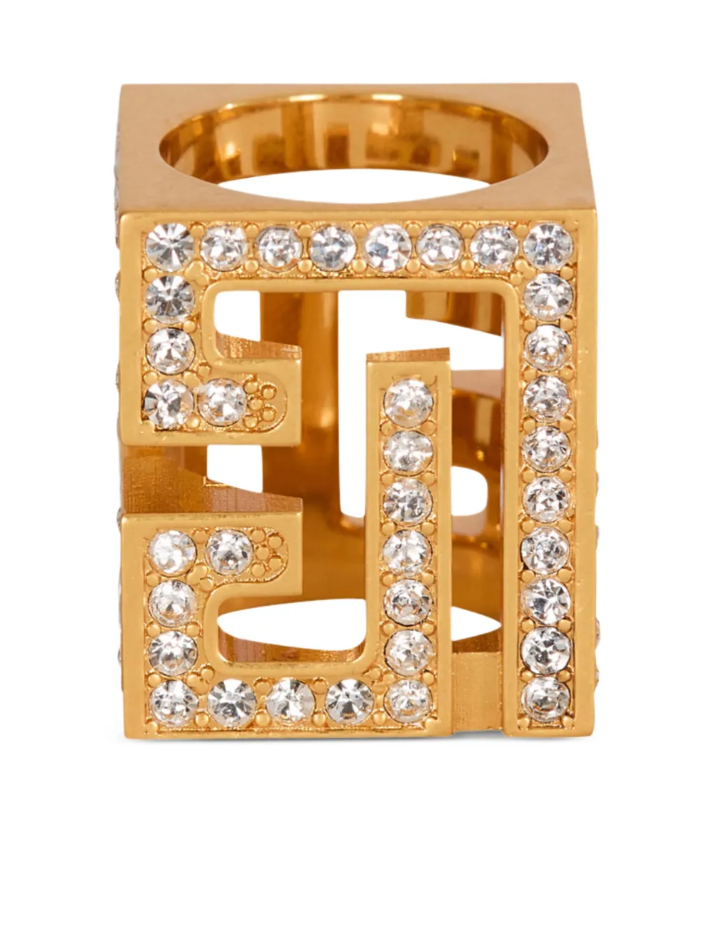 Трехмерное кольцо-куб с стразами Balmain, золотистый