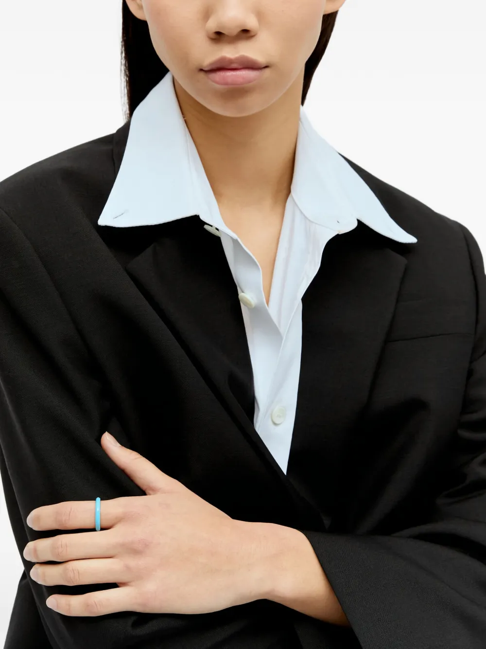 Тонкое кольцо с круглыми элементами и синими эмалированными деталями