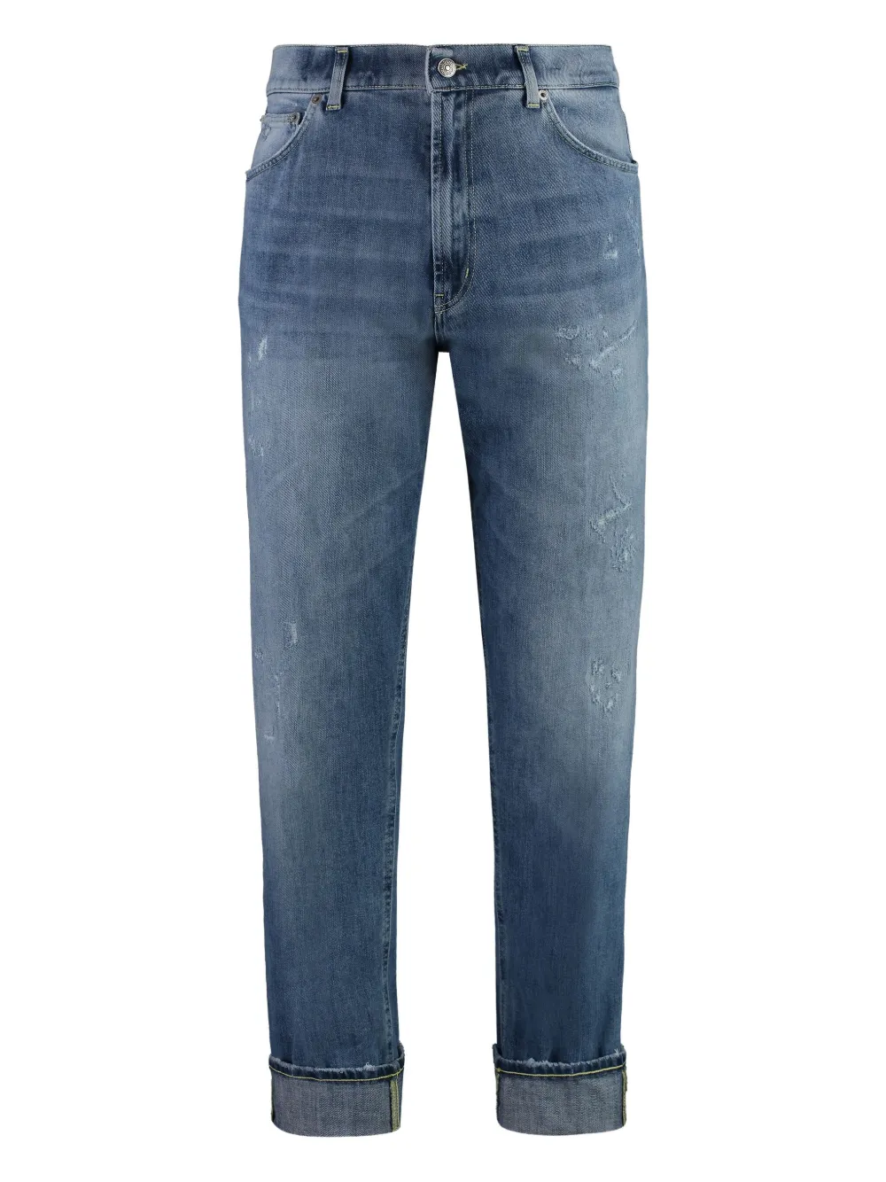 Джинсы с эффектом потертости и манжетами Dondup, синий